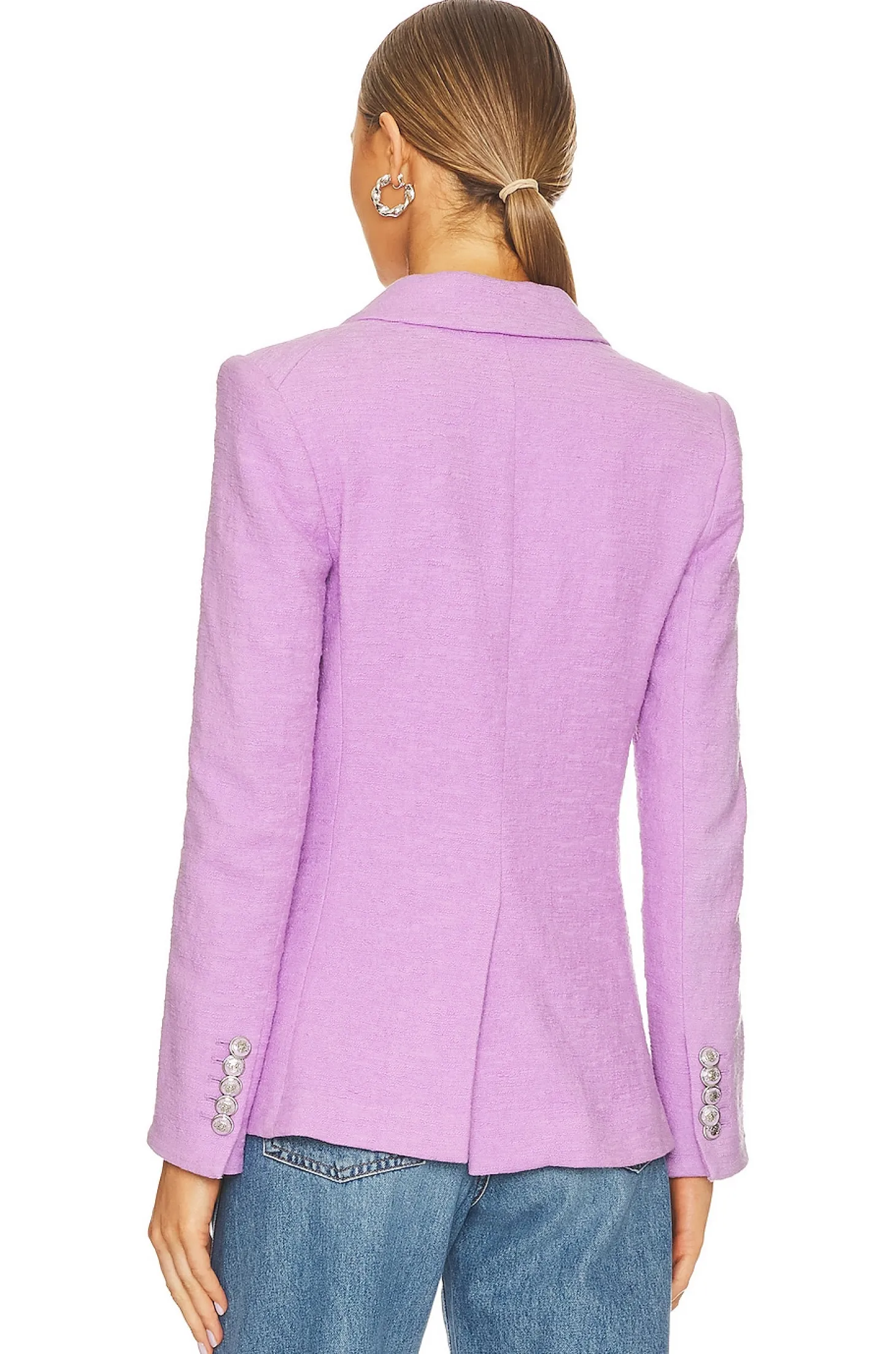 Cotton blend.Made in USA.Hand wash recommended.Double breasted front button closure.Padded shoulders.Front flap pockets and breast welt pocket.Buttoned cuffs.Tweed fabric with back vent