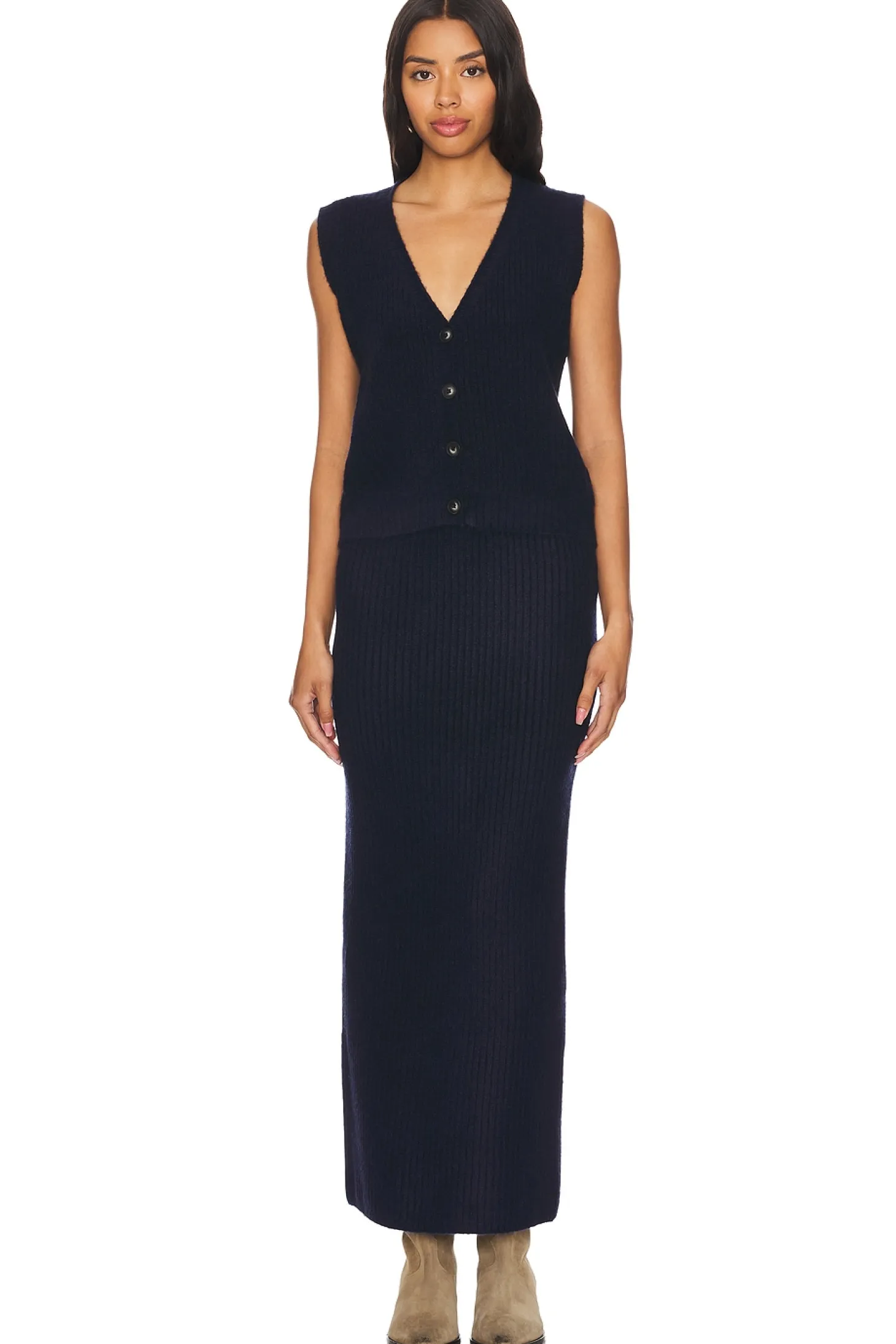 70% acrylic 27% nylon 3% elastane.Made in China.Machine wash.Front button closure.Ribbed knit fabric.Item not sold as a set