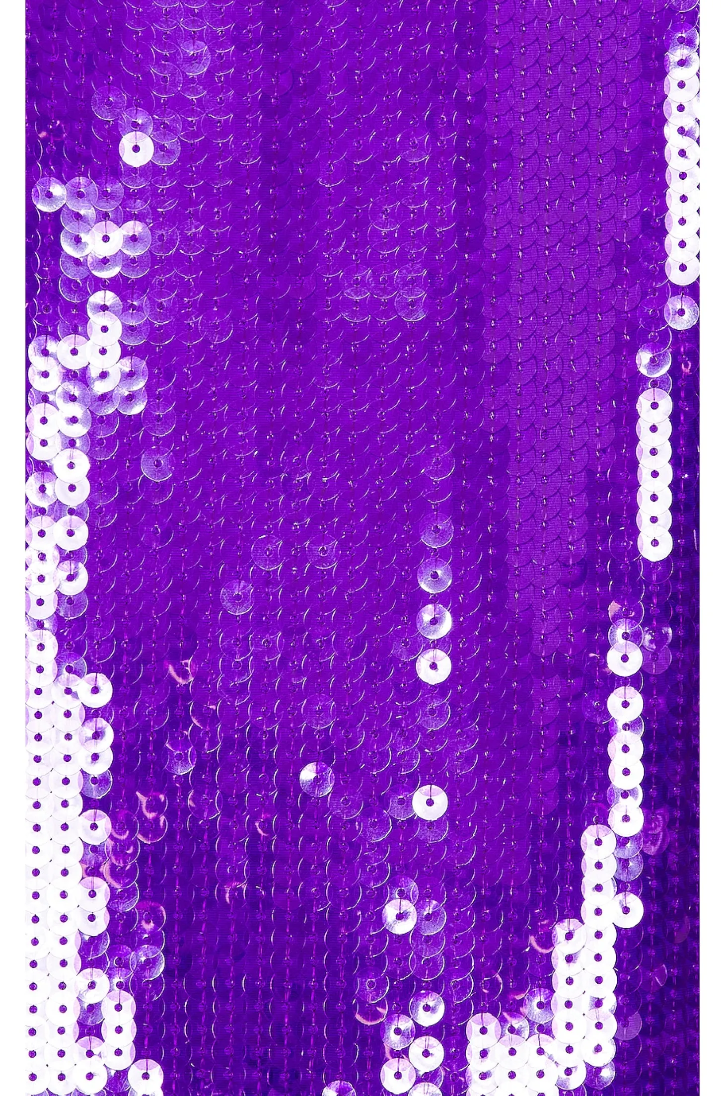 Self: 85% nylon 15% spandex Lining: 95% polyester 5% spandex.Made in USA.Dry clean only.Double lined.Hidden back zipper closure.Mockneck styling with back hook and eye closure.Allover sequin embellishments with back vent