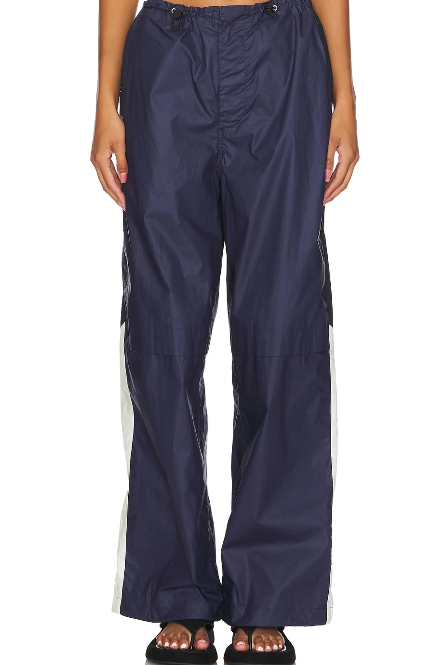 100% cotton.Made in China.Machine wash.Zip fly with button closure.Adjustable drawcord waist.3-pocket styling.Ripstop fabric with drawcord hem.26" at the knee narrows to 23" at the leg opening
