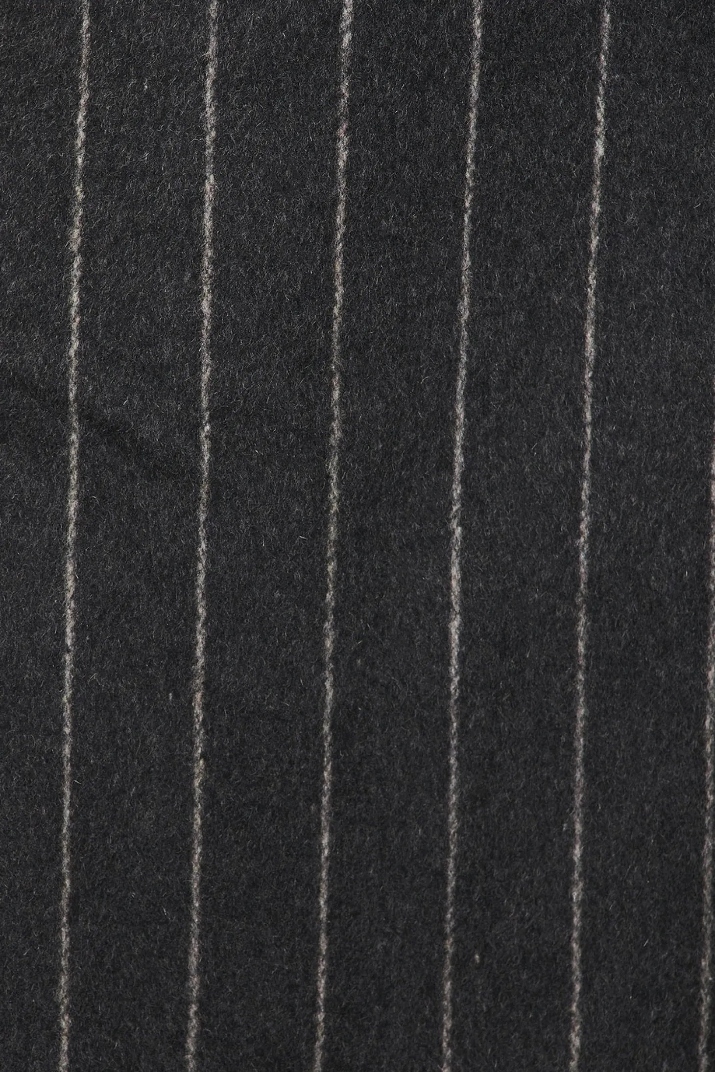 Self: 50% wool 50% polyester Lining: 100% polyester.Made in China.Dry clean only.Front double-breasted button closure.Light padding at shoulders with buttoned cuffs.Breast welt pocket and side flap pockets.Wool fabric with back vent