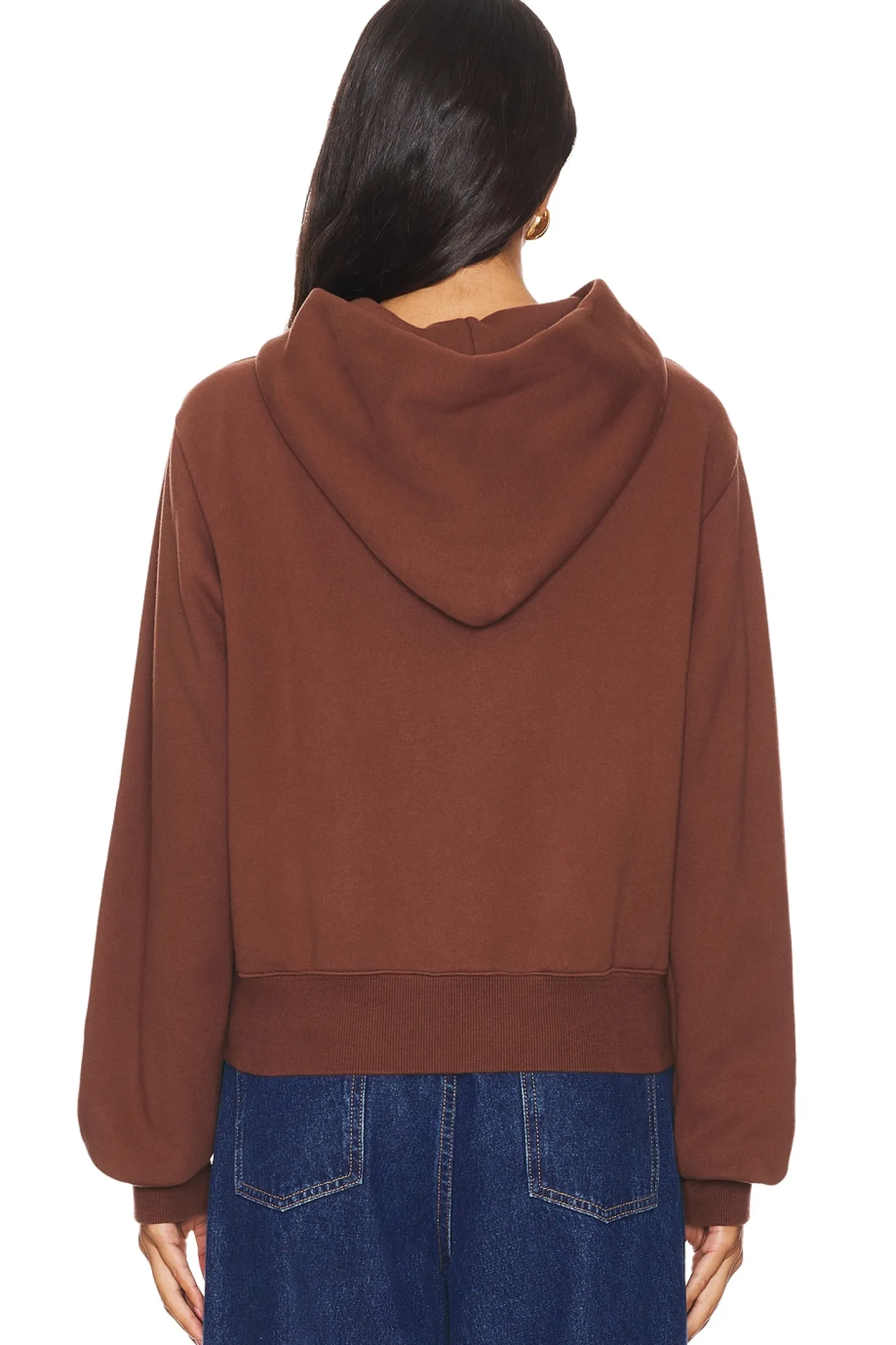 Knit textile.Imported.Machine wash recommended.Front zipper closure.Side seam pockets.Embossed front graphic with frayed trim.Knit fabric with fleece lining