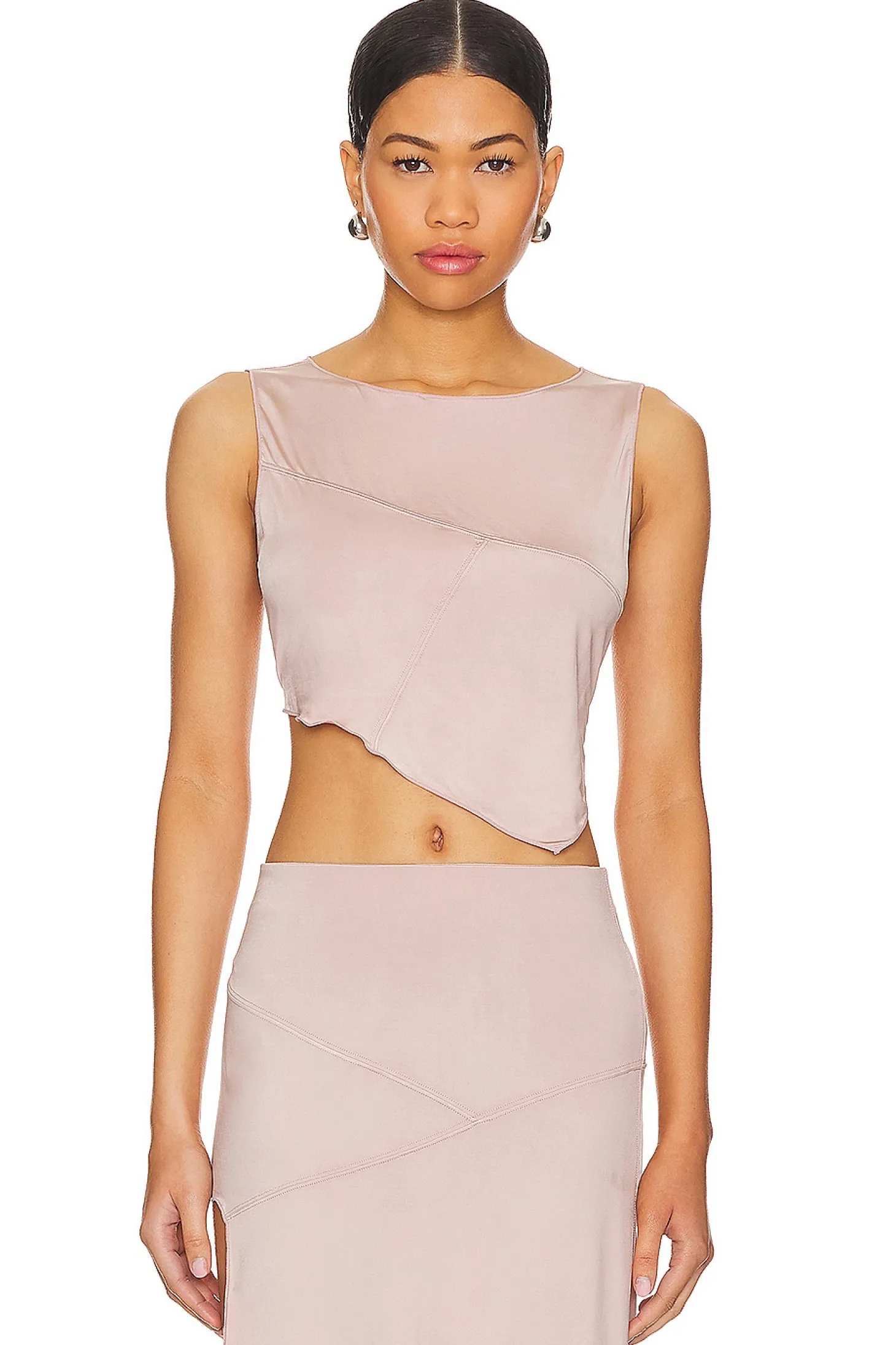 Flirty & femme define NBD's Myla Top in Mauve. Its asymmetric hemline adds playful detail to any look. Pair it with the matching skirt (sold separately) for a complete look..93% rayon 7% spandex.Made in China.Dry clean only.Asymmetrical hem.Lightweight jersey fabric.Item not sold as a set