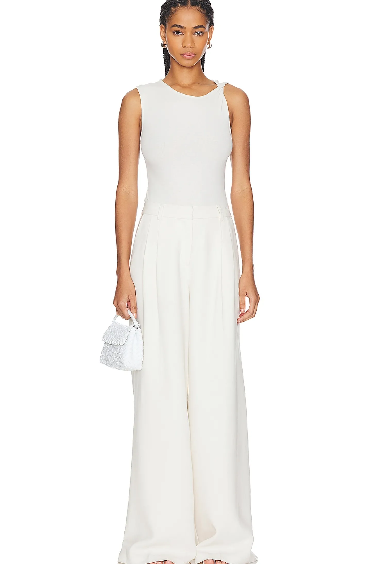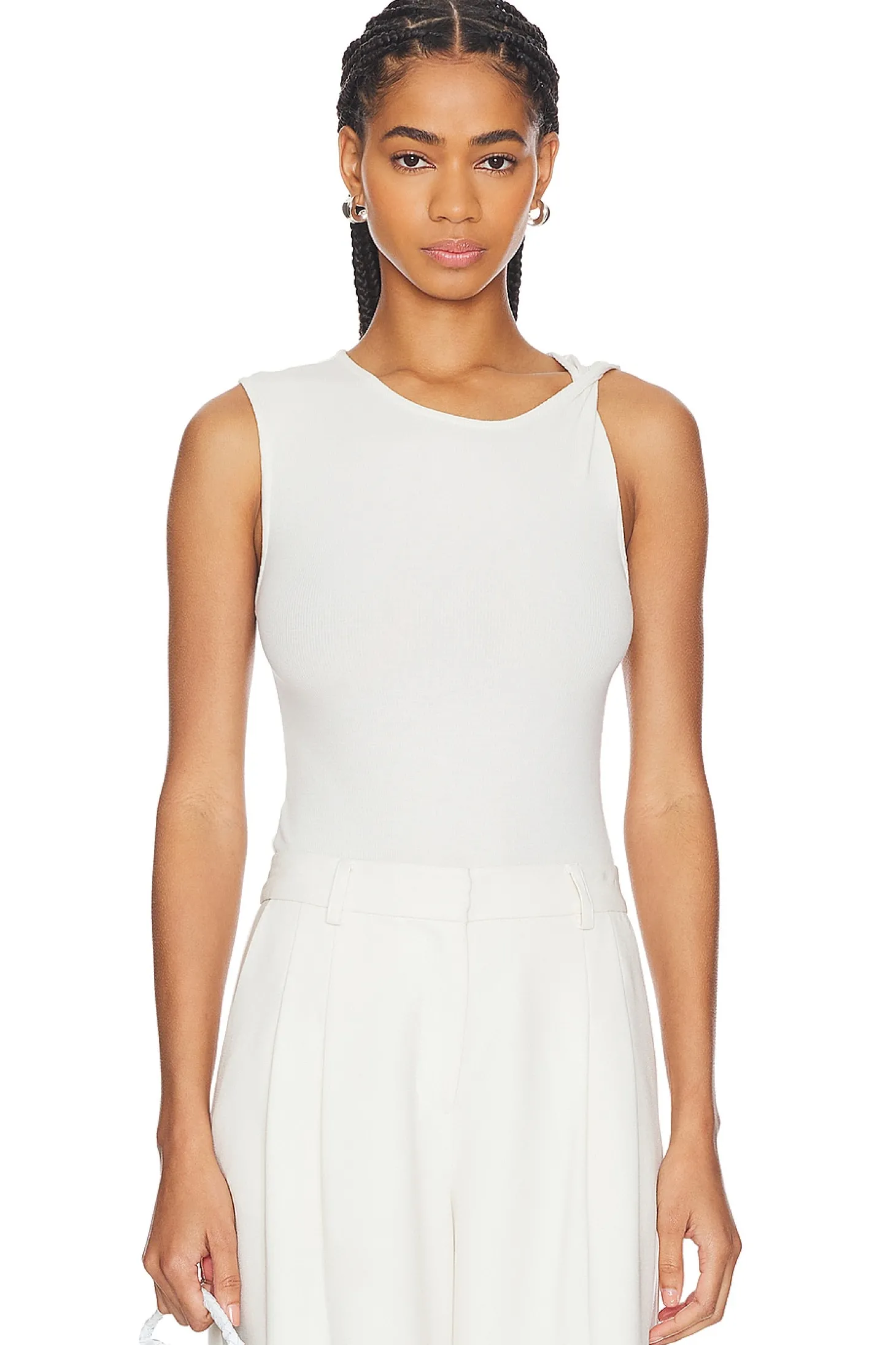 47% cotton 47% modal 6% spandex.Made in Peru.Machine wash.Pull-over styling.Gusset button closure.Lightweight ribbed fabric Slit along left side