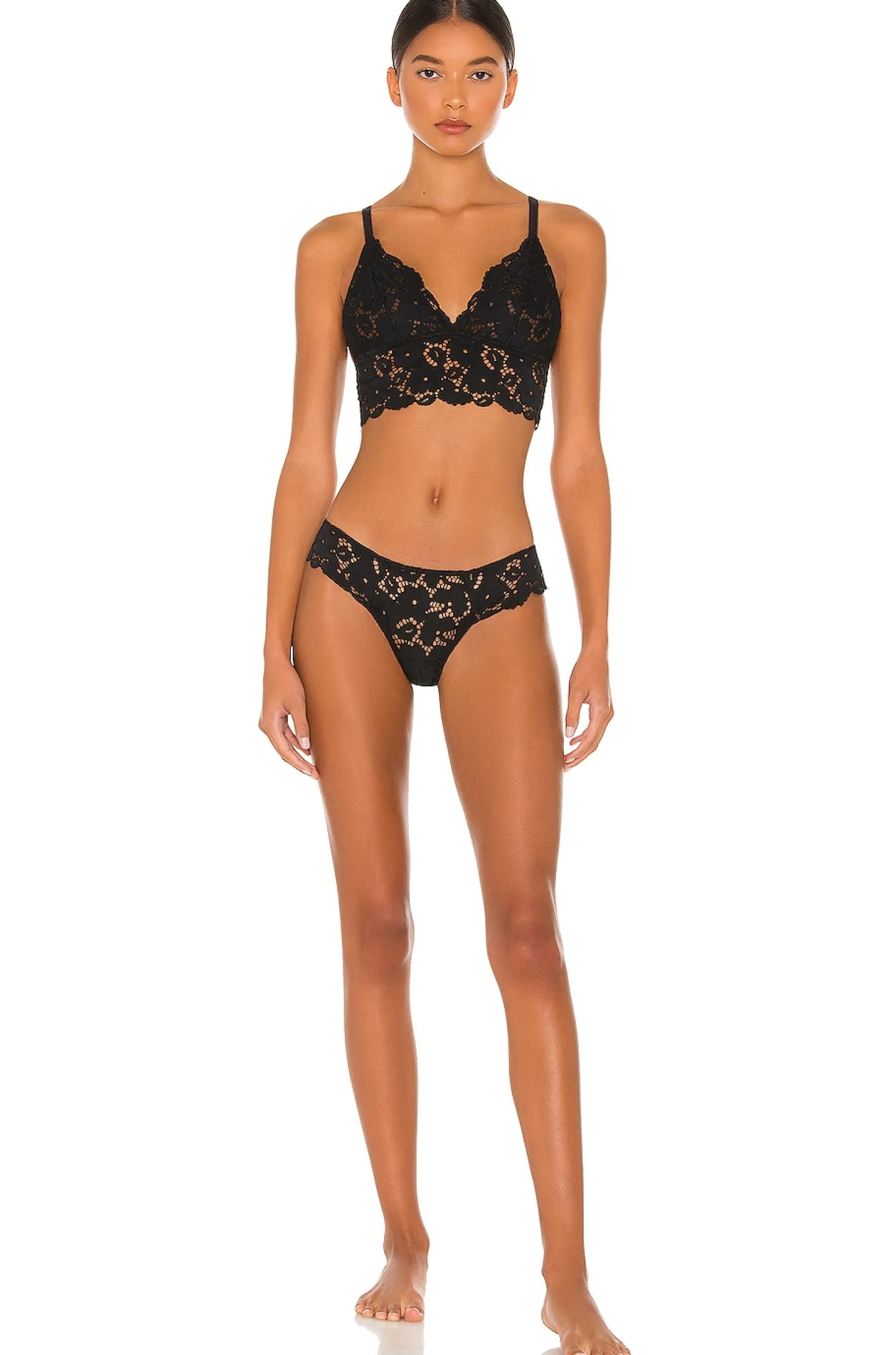 Self: 91% nylon 9% spandex Lining: 90% nylon 10% spandex.Made in China.Hand wash.Unpadded.Adjustable shoulder straps.Lace fabric.Item not sold as a set