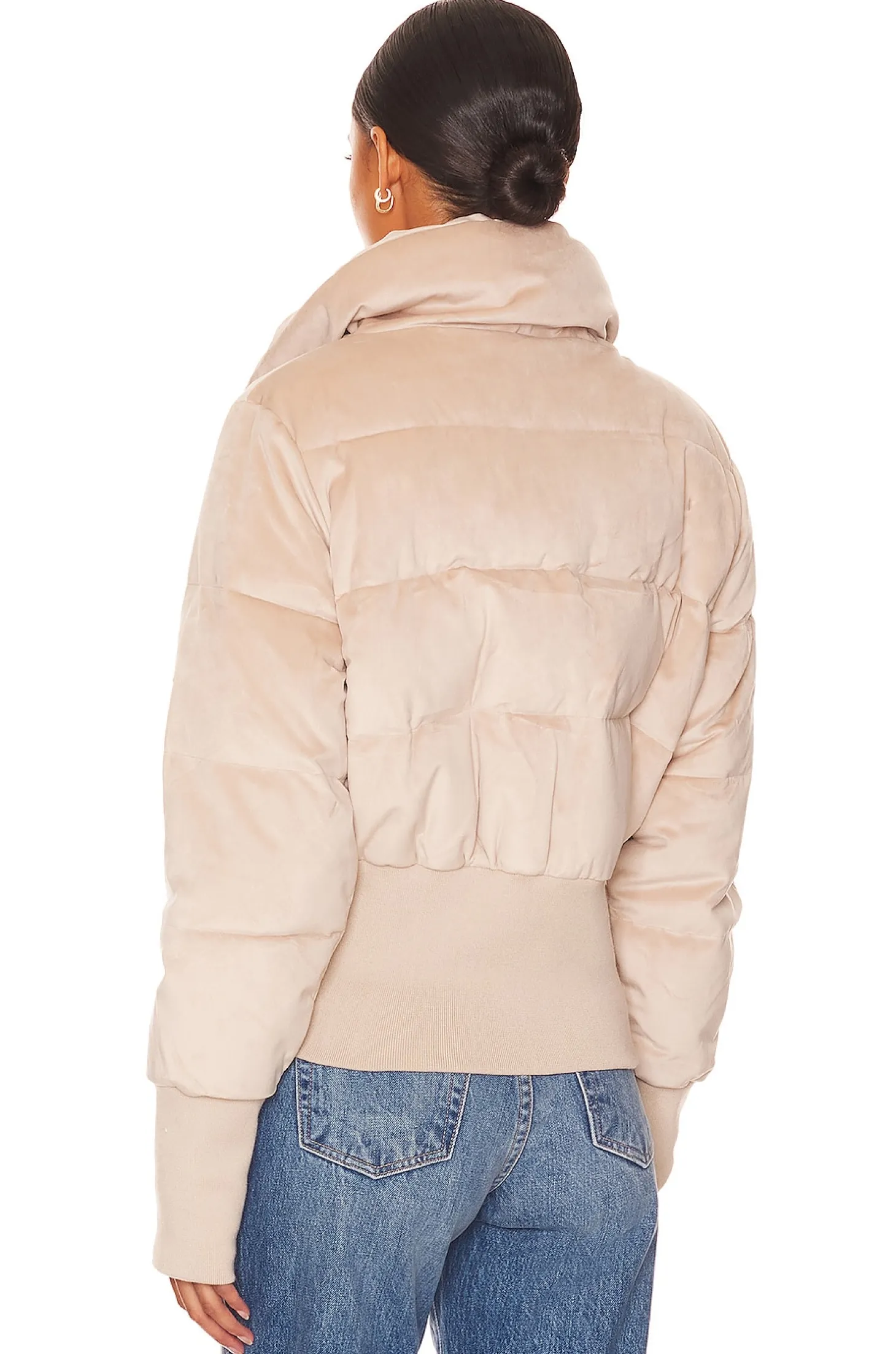 Main: 100% polyester Filling: 100% recycled polyester Lining: 100% polyester Trim: 80% polyester20% elastane.Made in China.Hand wash cold.Front zipper closure.Banded ribbed hem and cuffs
