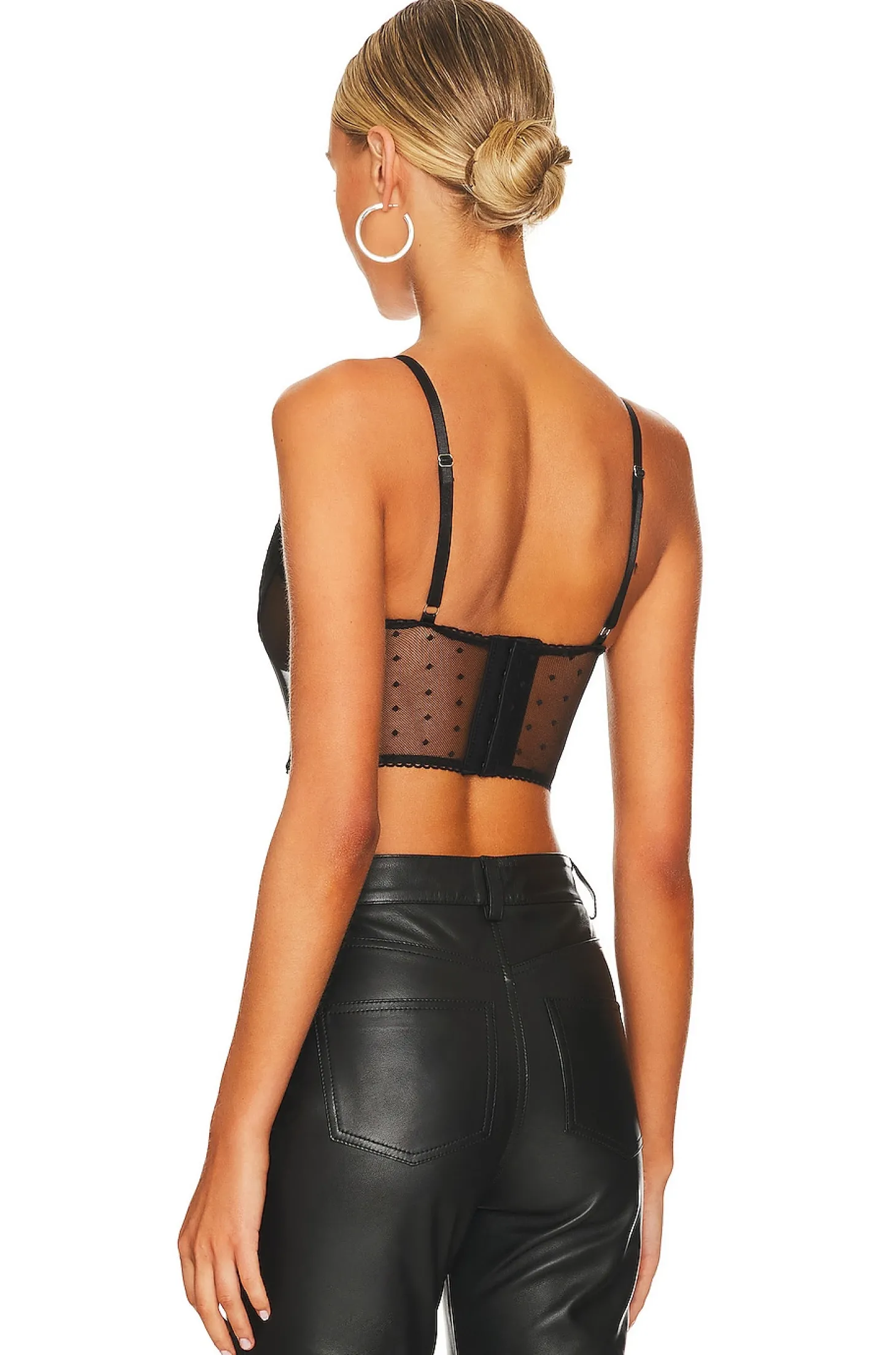 90% polyamide 10% elastane.Made in China.Hand wash.Unpadded underwire cups.Back hook and eye closure.Boned bodice.Sheer mesh fabric.Item not sold as a set
