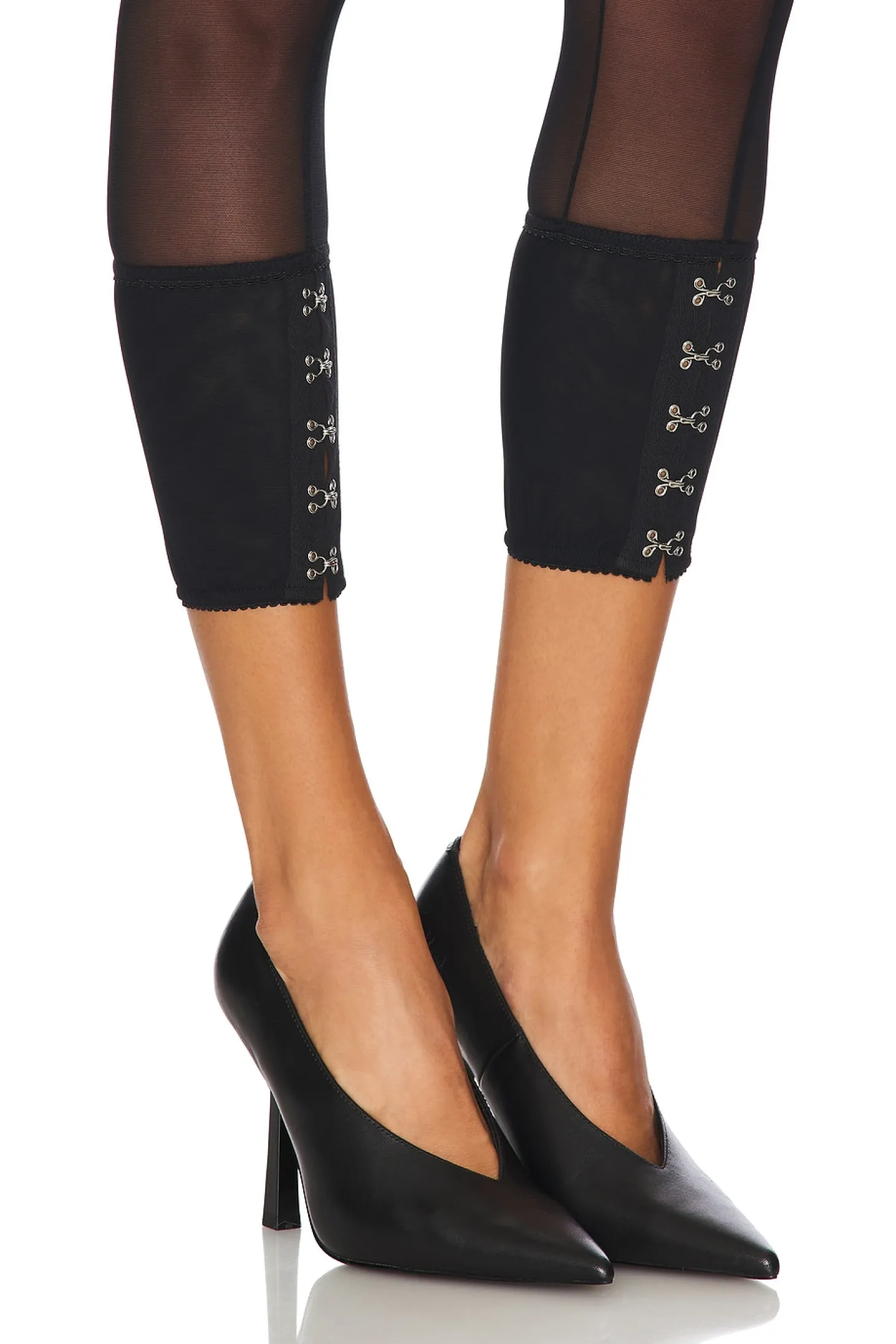 82% polyamide 18% elastane.Made in Italy.Machine wash.Pull-on styling.Hook and eye detailing Scallop hem detailing.Lightweight mesh fabric.12" at the knee narrows to 10" at the leg opening