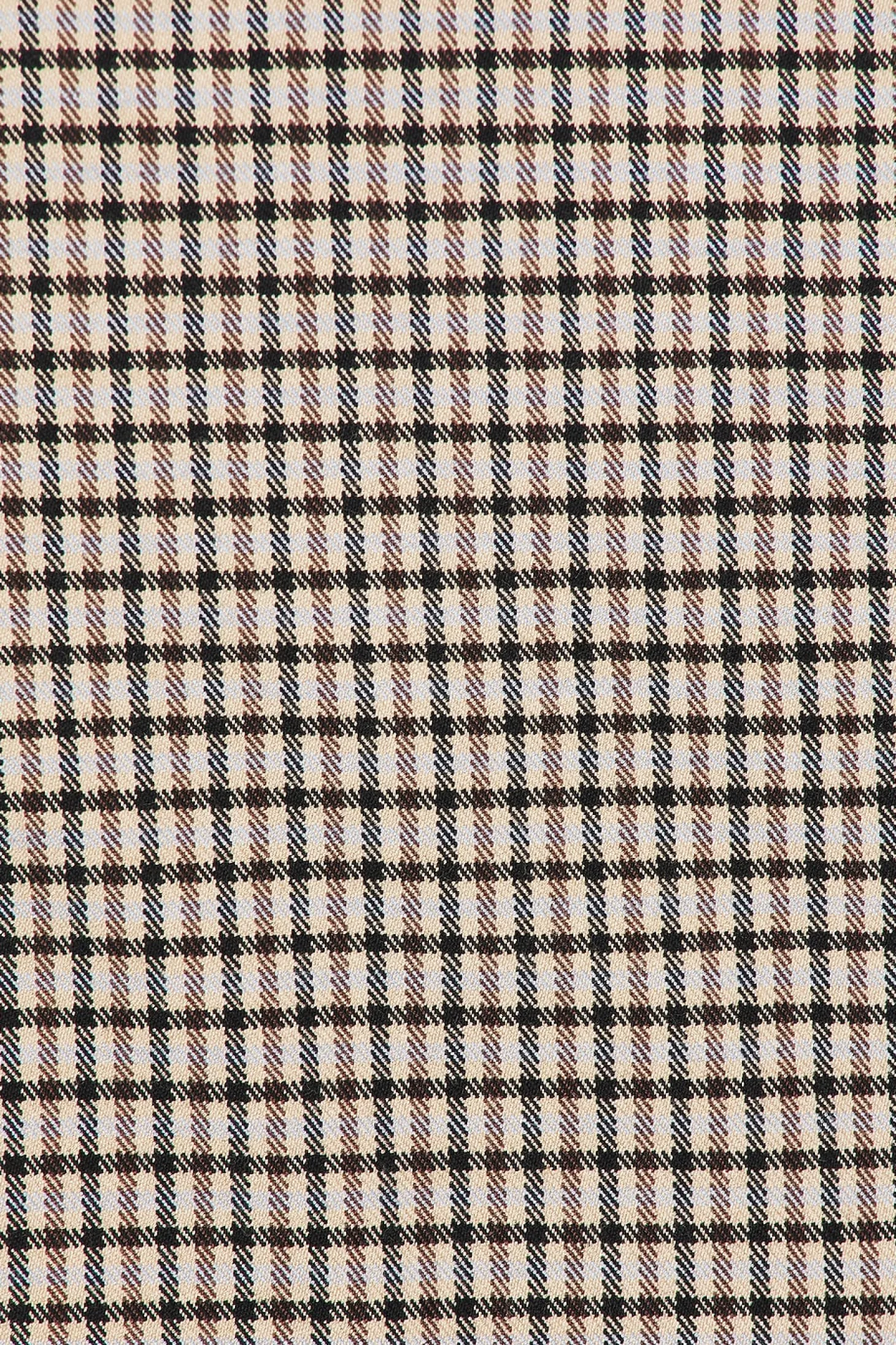 Self: 65% polyester 33% rayon 2% spandex Lining: 100% polyester.Made in China.Dry clean only.Hidden front zip with snap closure.Front slip pockets.Midweight twill fabric with crushed velvet trim