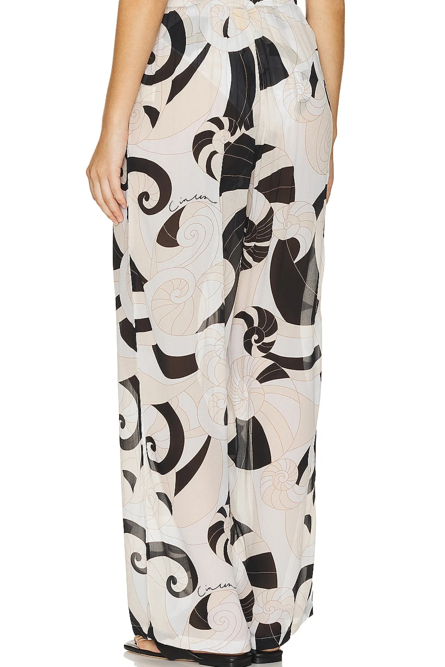 100% viscose.Made in Bali.Hand wash.24" at the knee narrows to 20" at the leg opening