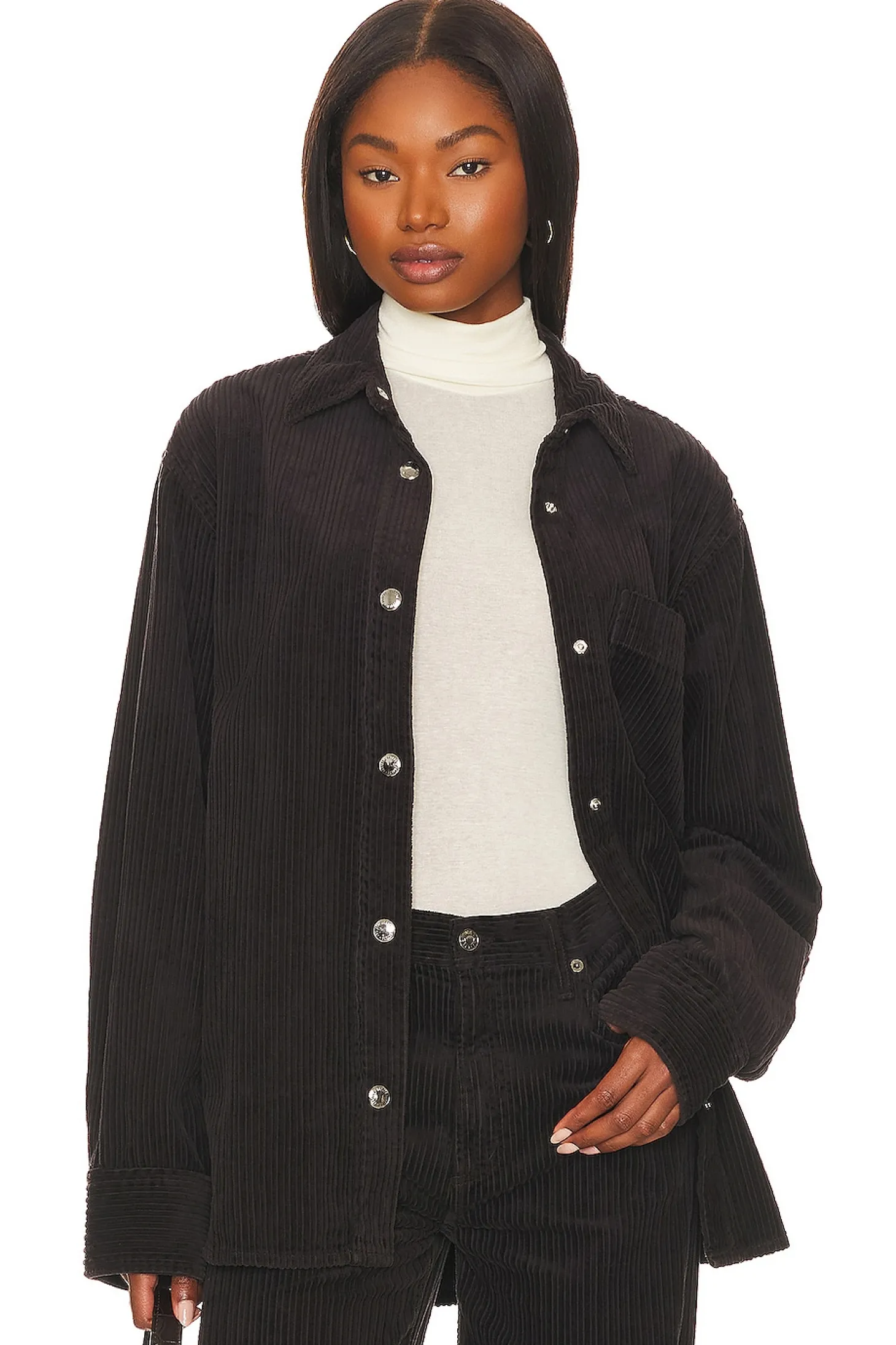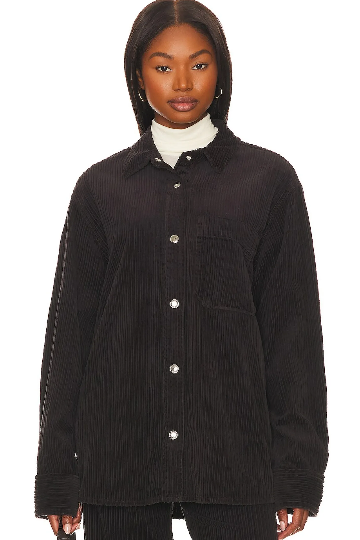 100% cotton.Made in USA.Machine wash.Front button closure.Breast slip pocket.Button cuffs.Lightweight ribbed corduroy fabric.Item not sold as a set