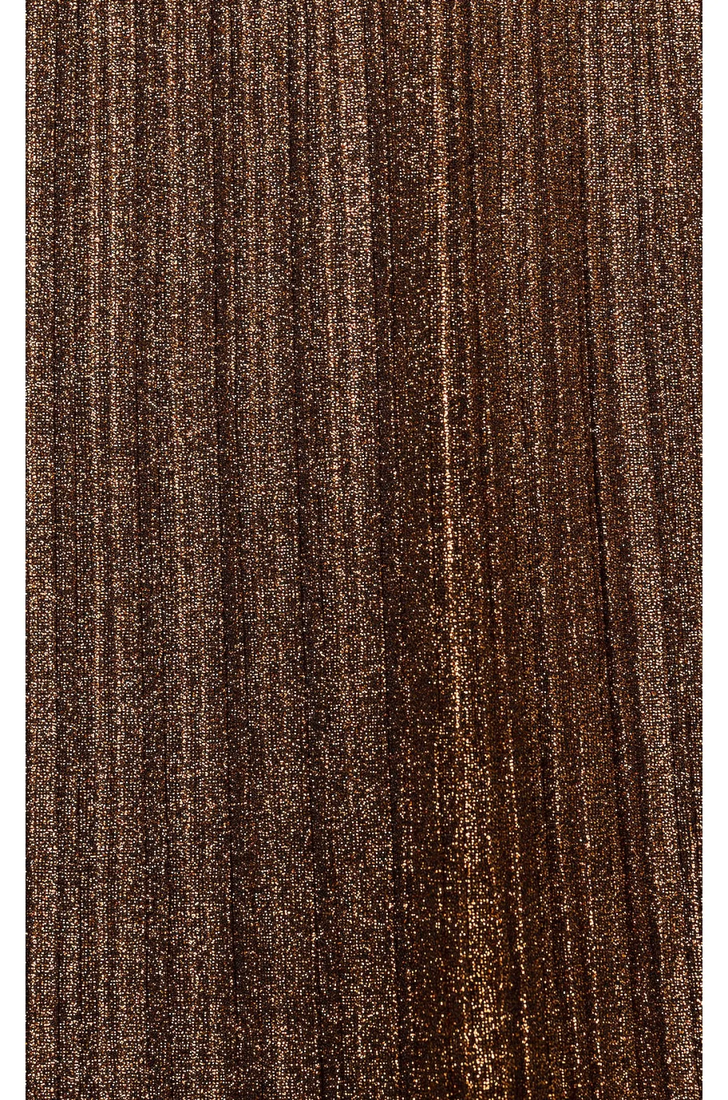 60% nylon 35% metallic 5% elastane.Made in China.Dry clean only.Partially lined.Hidden back zipper closure.Waist cut-outs.Lurex detail throughout