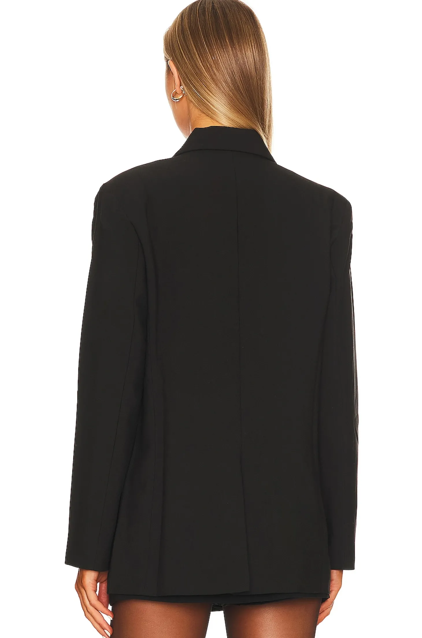 Self: 77% polyester 19% viscose 4% elastane Lining: 97% polyester 3% elastane.Made in China.Dry clean only.Gold-tone front button closure.Front slip pockets.Padded shoulders.Midweight suiting fabric