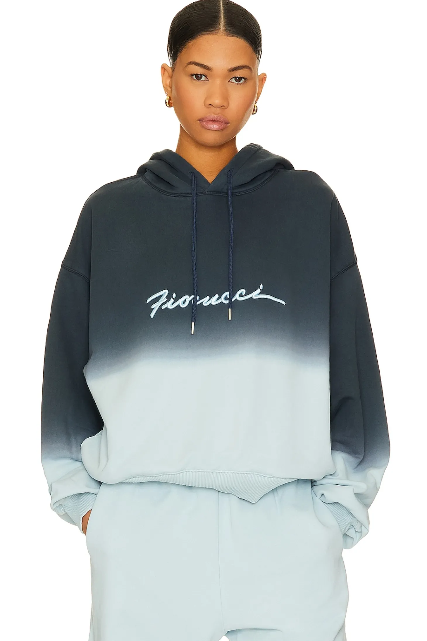 100% organic cotton.Made in Portugal.Machine wash.Side seam pockets.Attached drawstring hood.Terrycloth lining with ombre detail and embroidered FIORUCCI logo.Item not sold as set