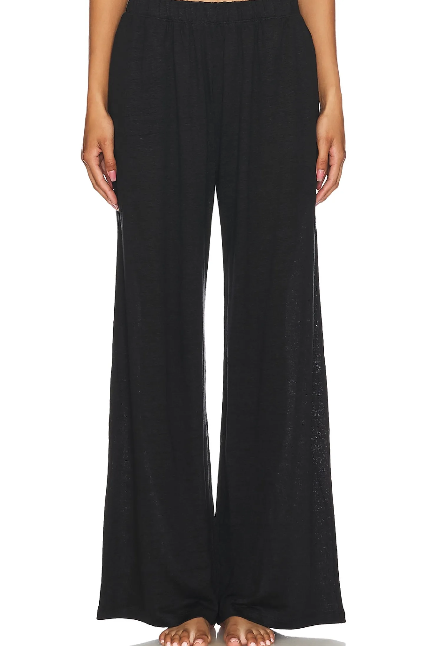 100% linen.Made in China.Machine wash.Pull-on styling with elastic waistband.Side pockets.Linen fabric.Item not sold as set