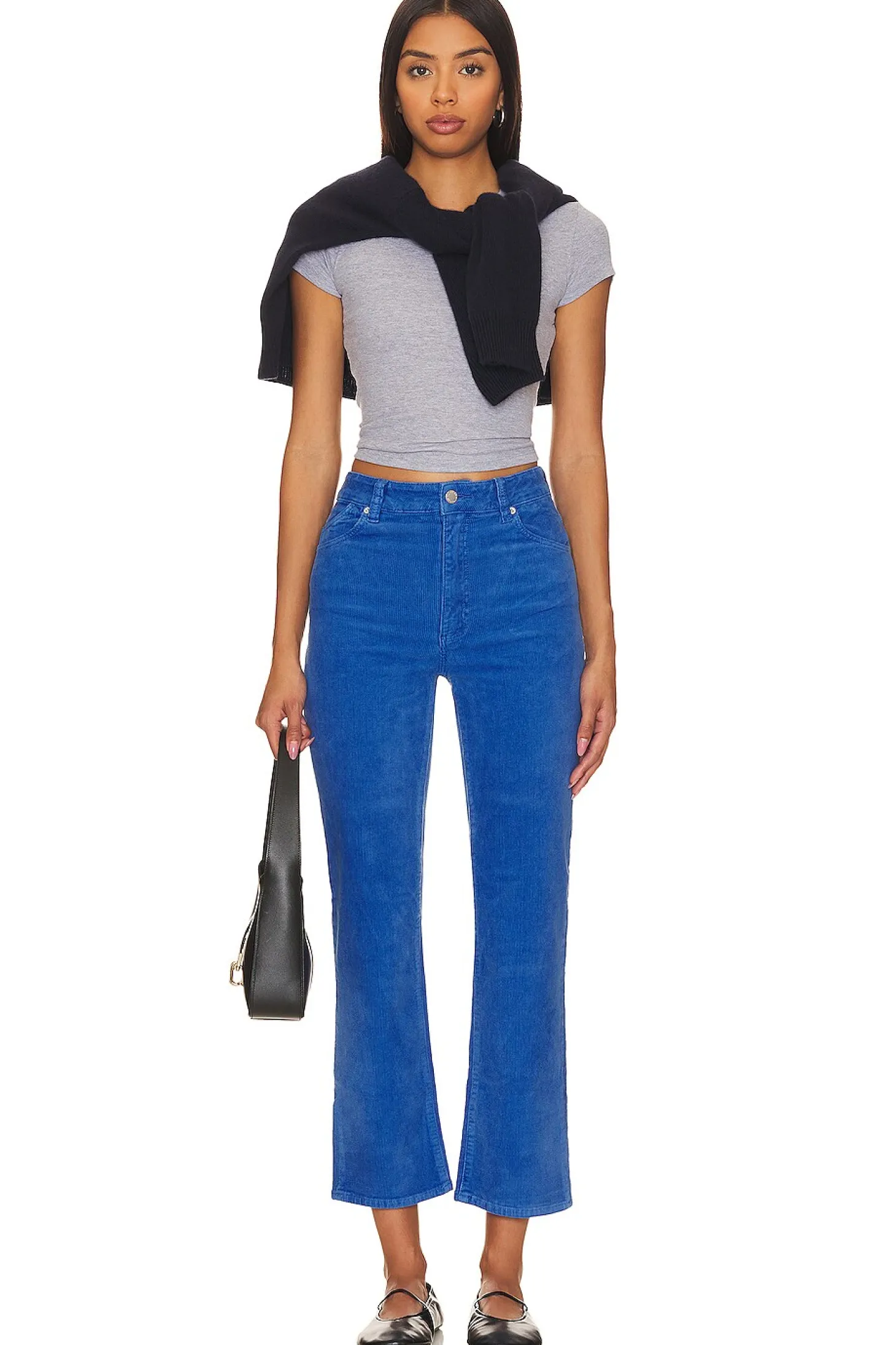99% cotton 1% elastane.Made in China.Machine wash.Zip fly with button closure.5-pocket styling.Corduroy fabric.15" at the knee and 15" at the leg opening