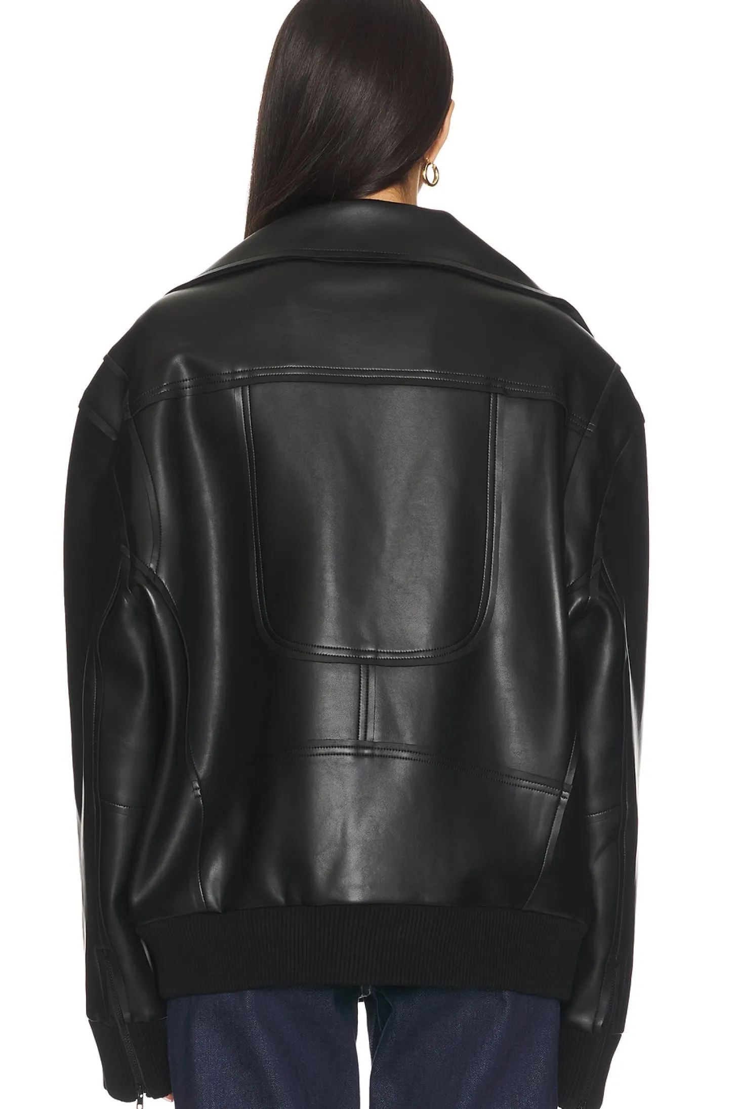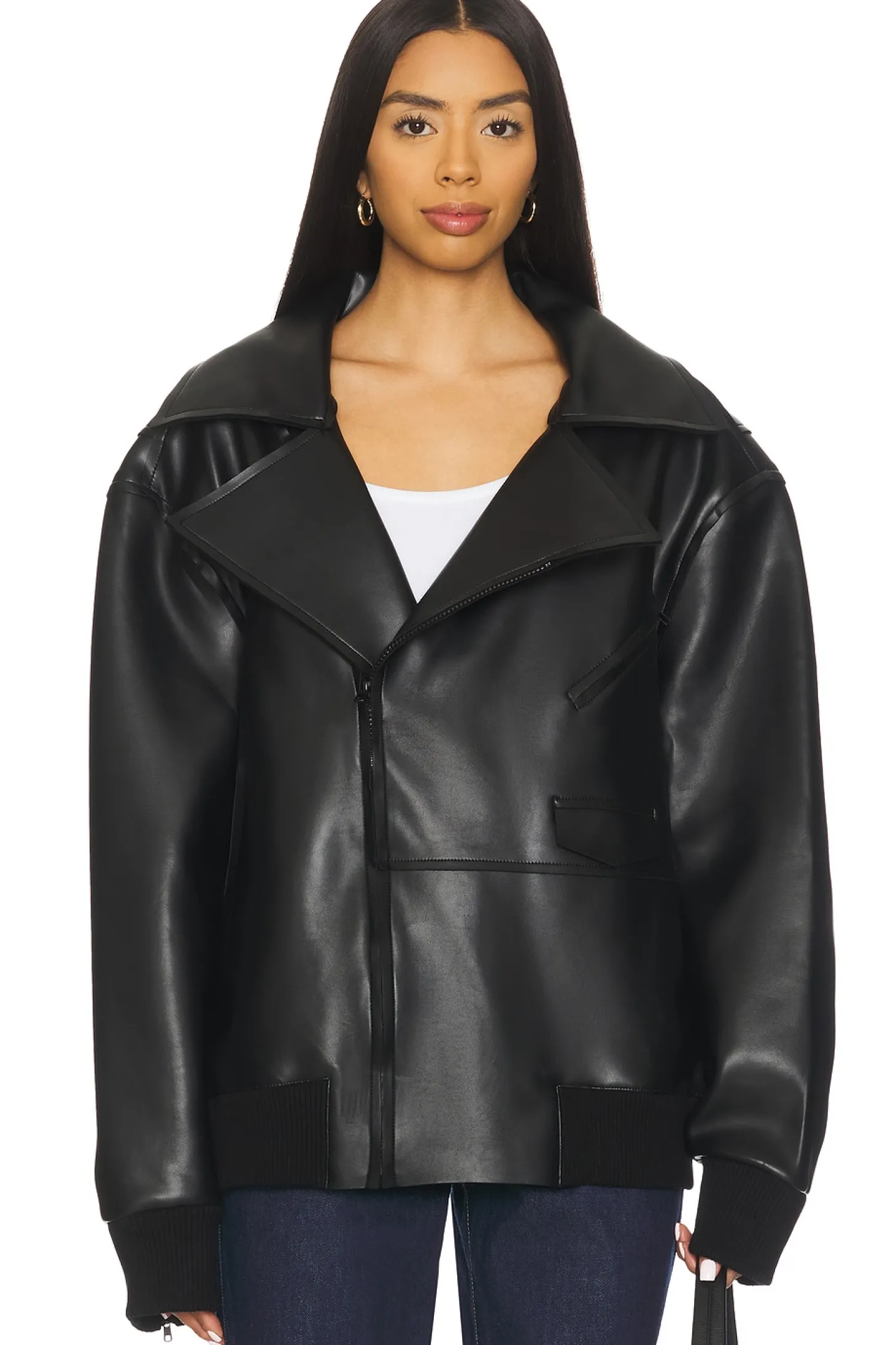 Self 1: 100% polyurethane Self 2: 90% polyester 10% spandex Contrast Fabric: 95% polyester 5% spandex.Made in China.Machine wash.Front zipper closure.4-pocket design.Faux leather.style runs large, size down