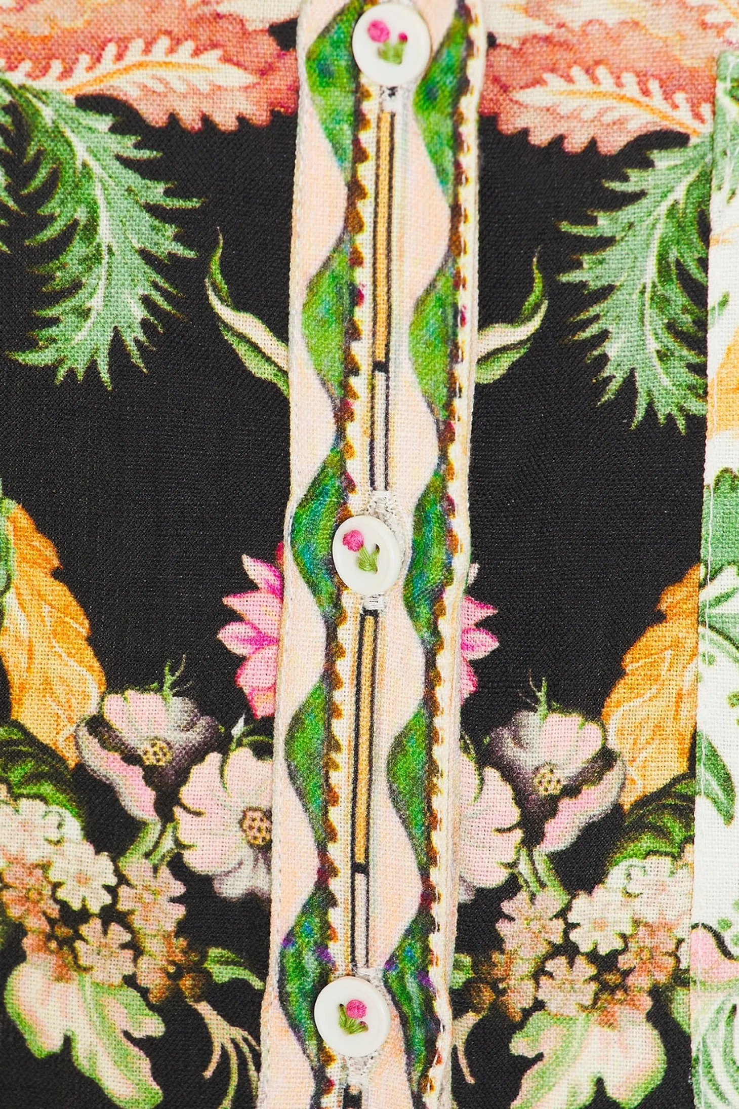 55% linen 45% cotton.Made in India.Dry clean only.Front button closure.Singular front pouch pocket.Buttoned cuffs.Linen fabric Item not sold as a set