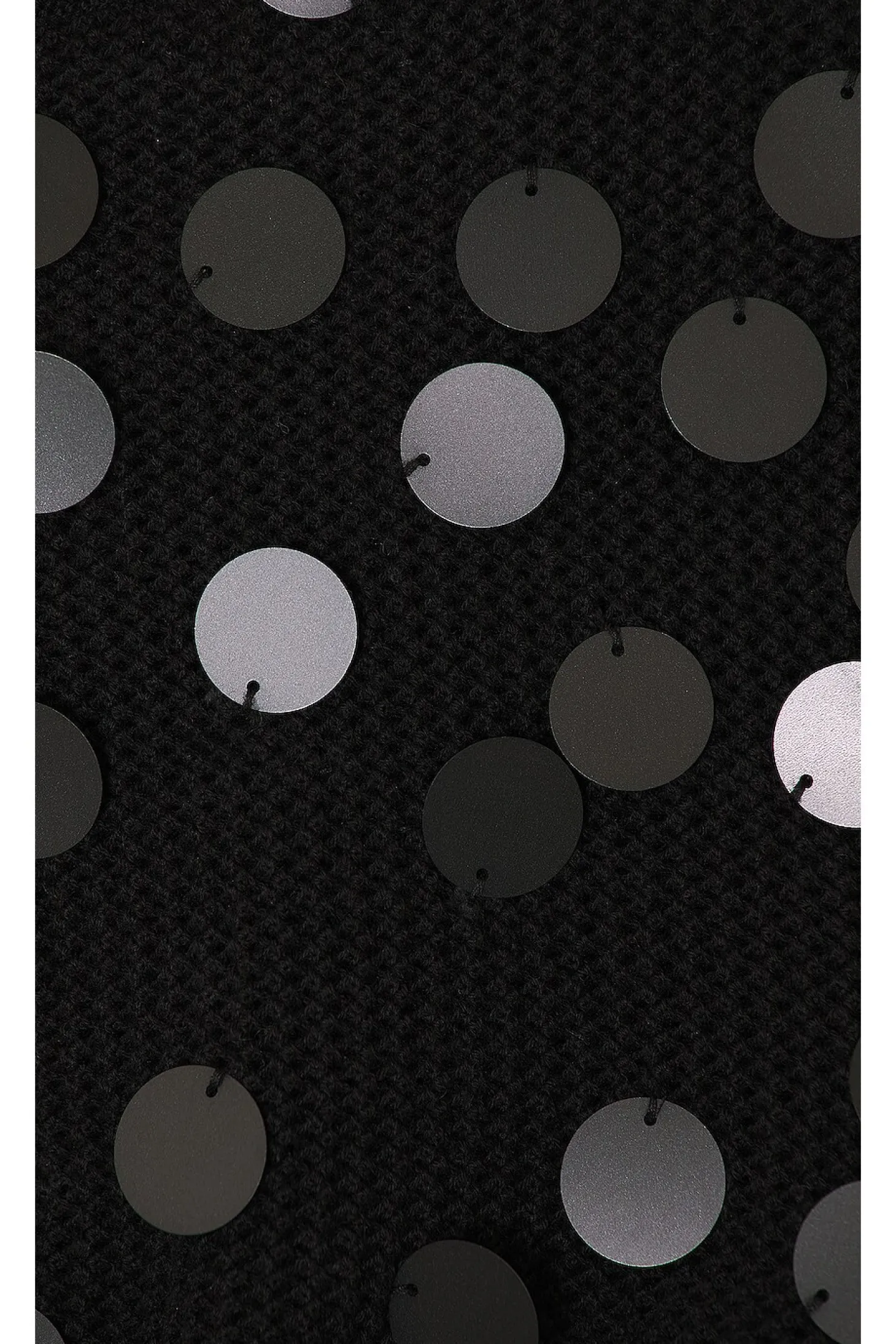 100% cotton.Made in China.Spot clean only.Front button closure.Knit jersey fabric with tonal paillette embellishments throughout