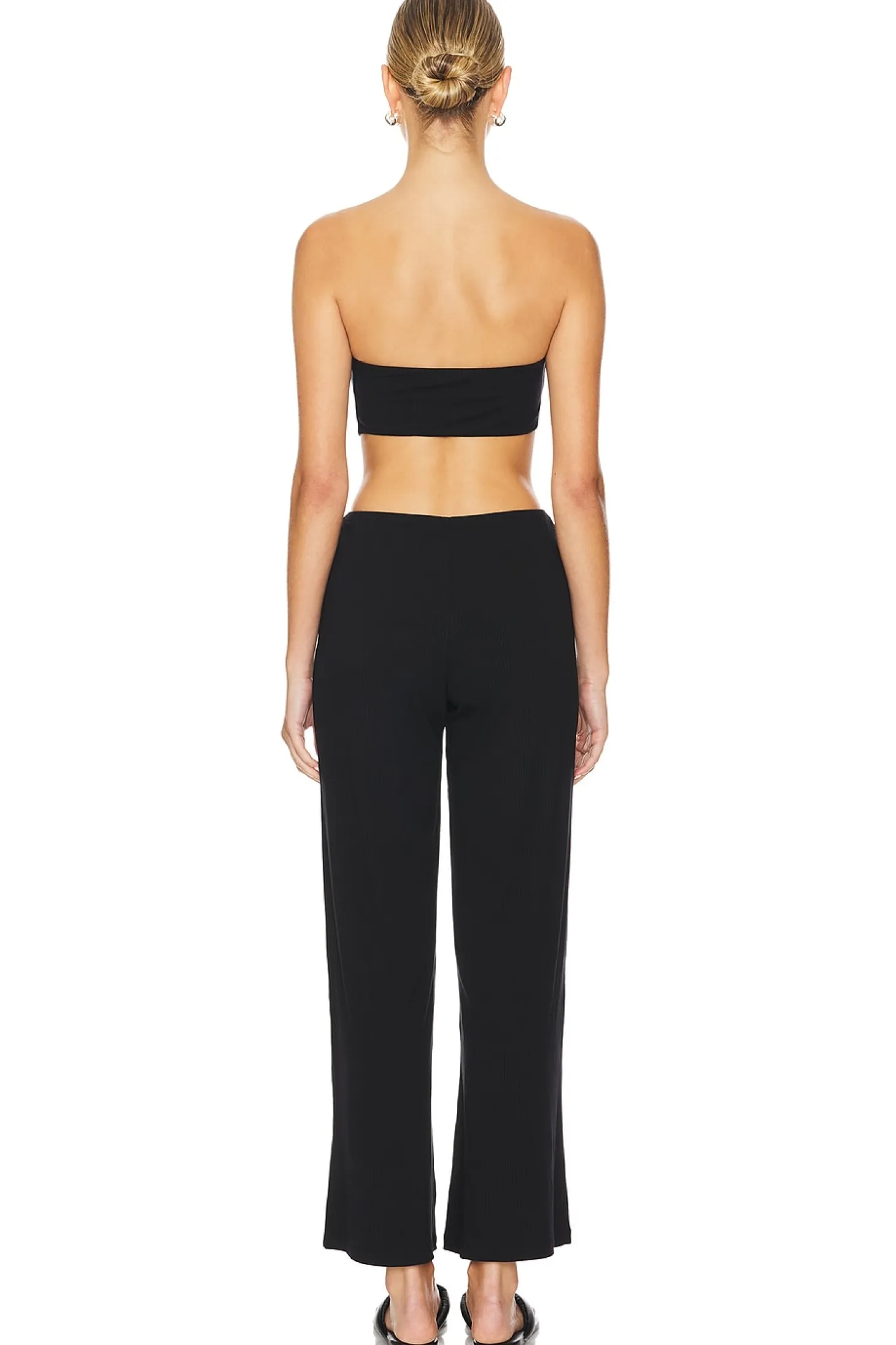 Jersey textile.Made in China.Hand wash recommended.Pull-on styling.Acrylic ring accent at center.Cut-out detail at center.Ribbed jersey fabric.Neckline to hem measures approx 45" in length 24" at the knee and 24" at the leg opening