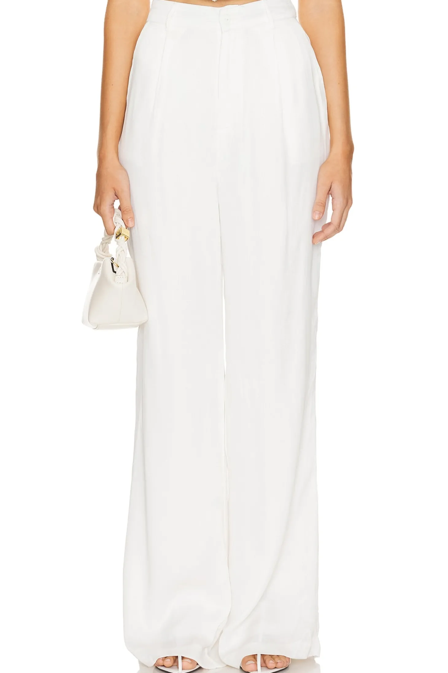 100% viscose.Made in India.Hand wash.Zip fly and button closure.4-pocket style.Satin fabric.22" at the knee breaks to 23" at the leg opening