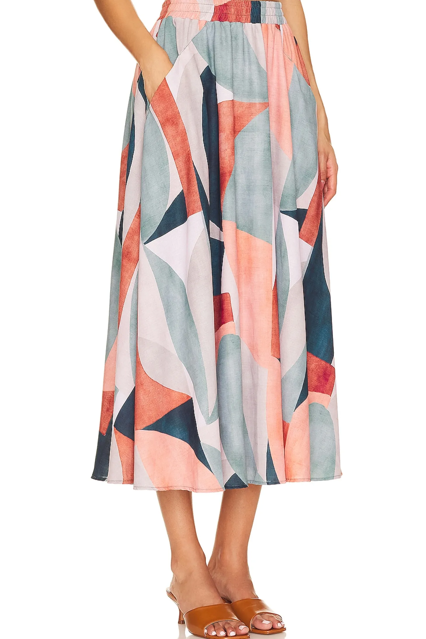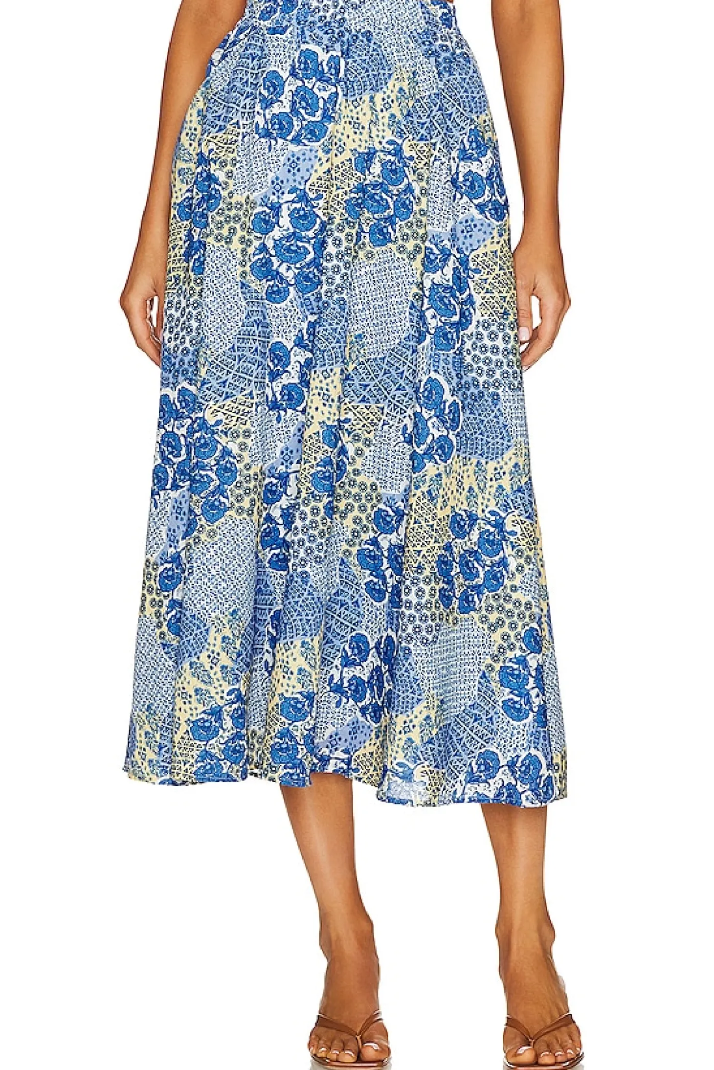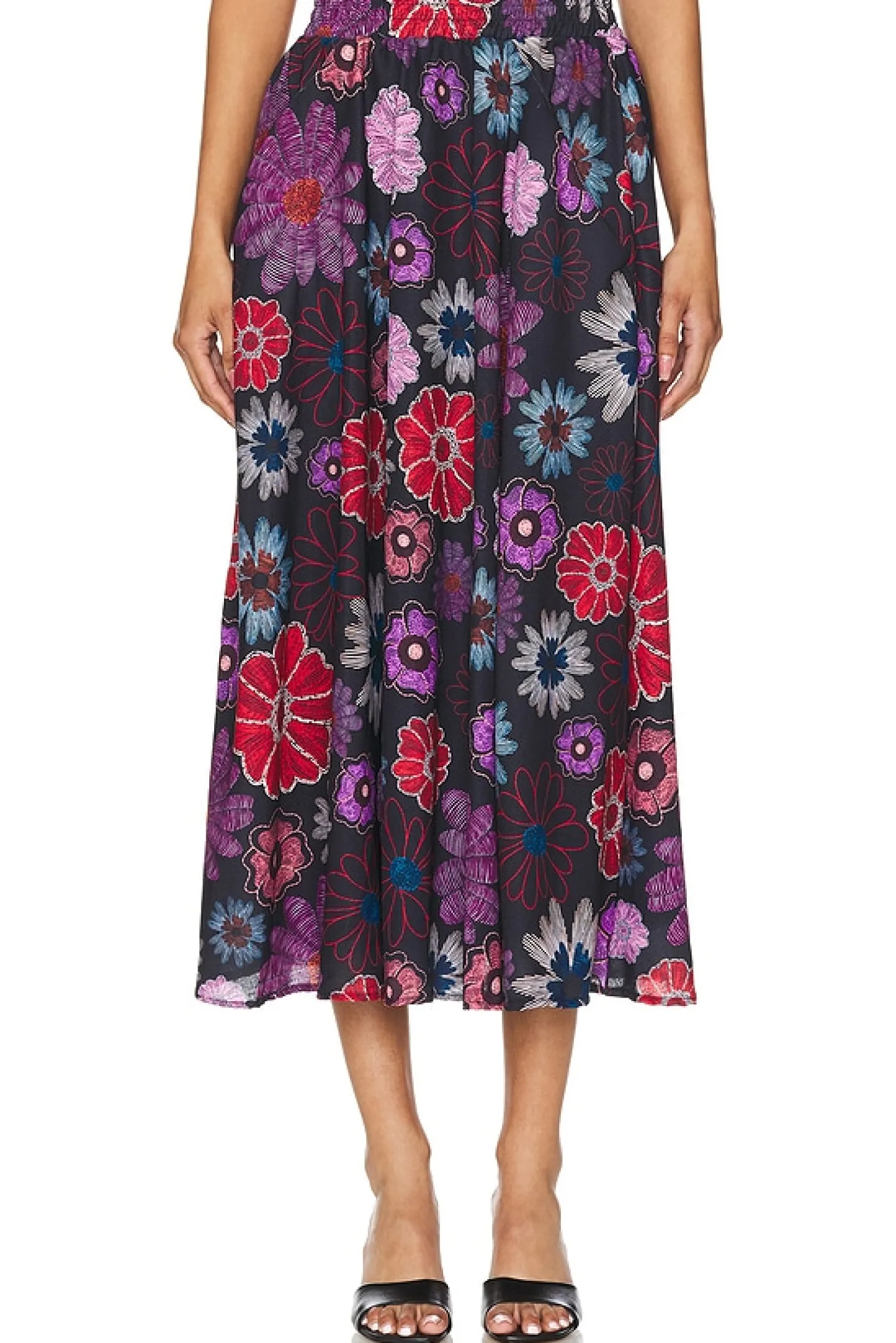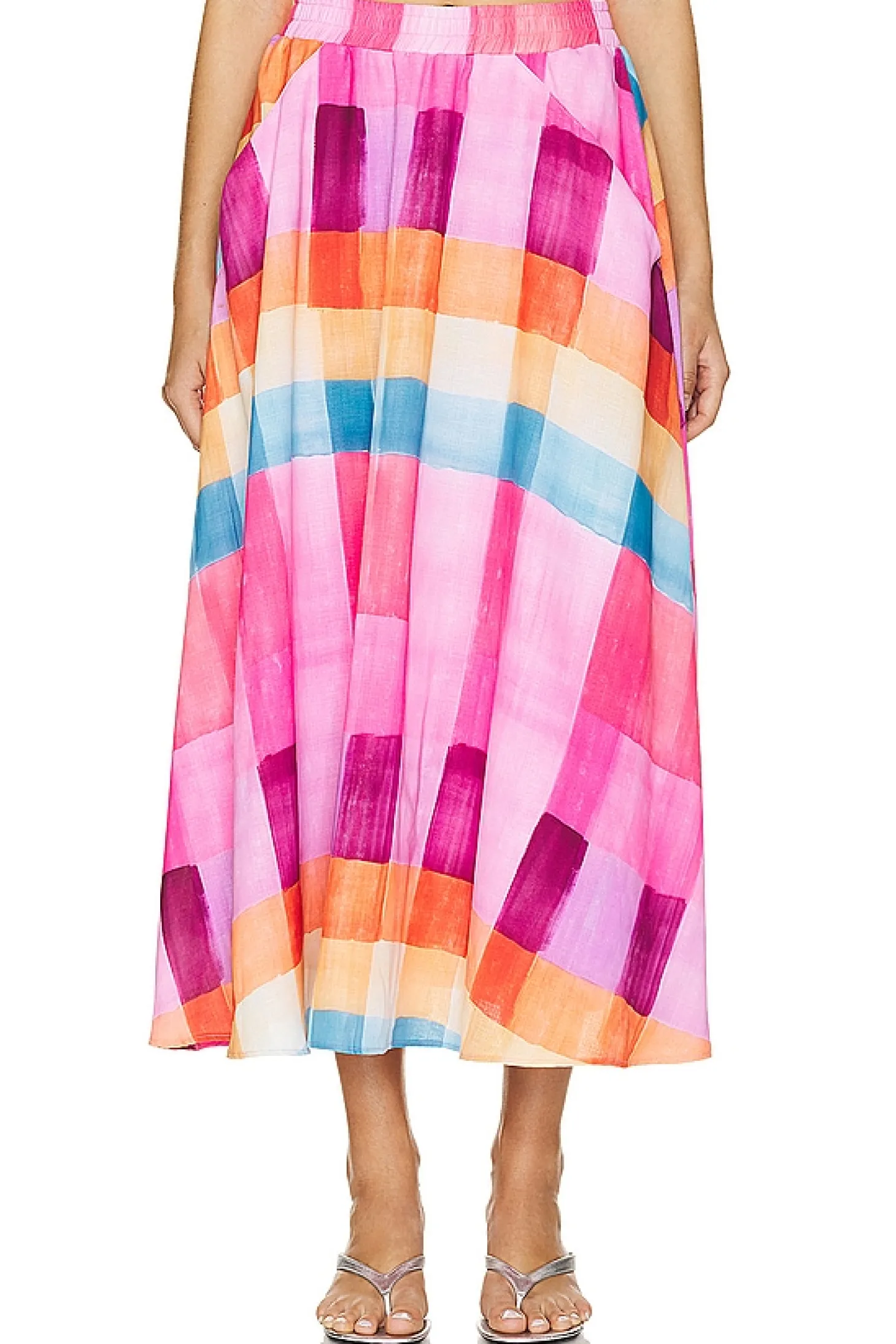 Body: 98% cotton 2% elastane .Made in Colombia.Hand wash cold.Fully lined.Pull-on styling with smocked waistband.Side slant pockets.Lightweight linen fabric Item not sold as a set.Skirt measures approx 36" in length