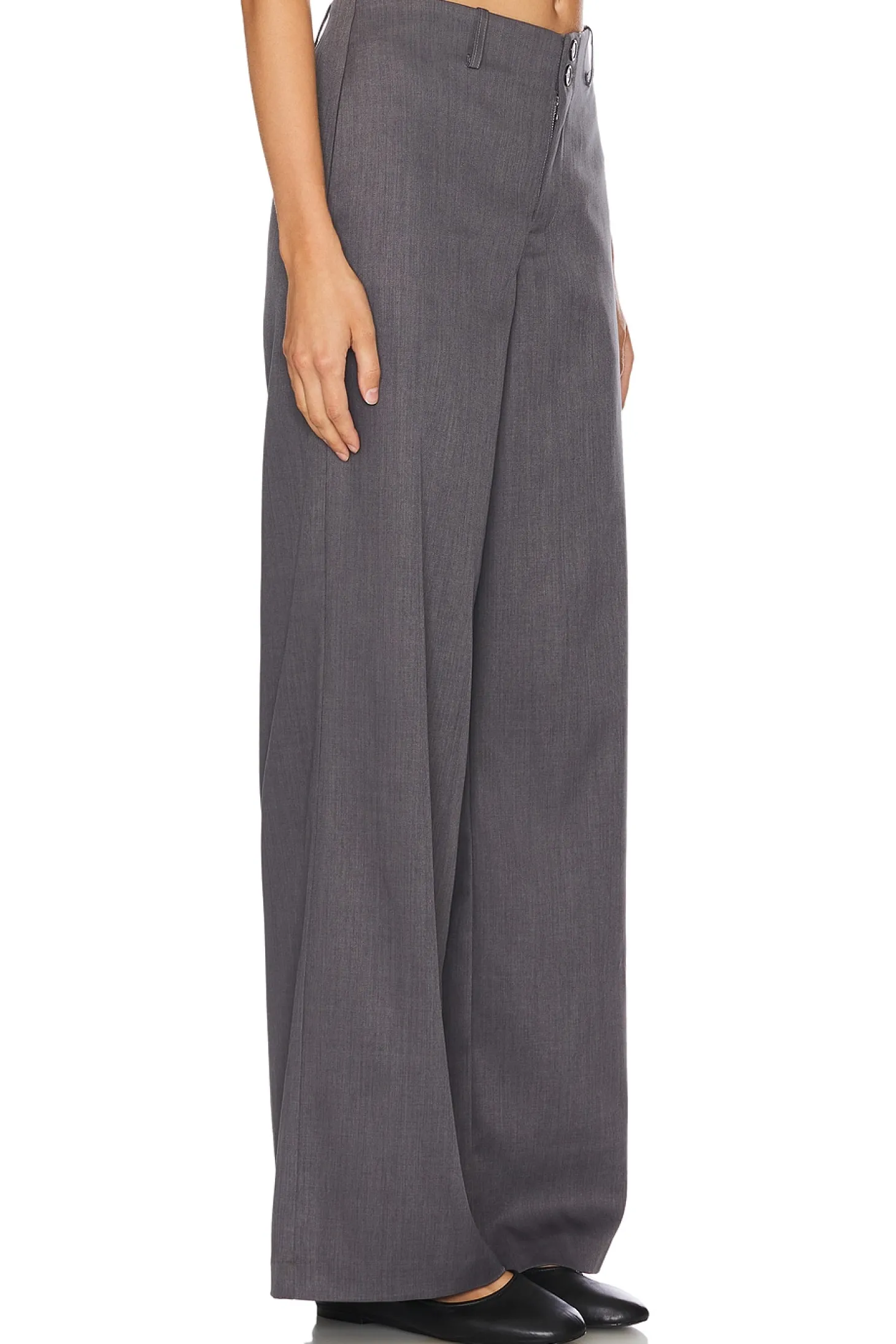 100% polyester.Made in China.Hand wash.Zip fly with button closure.Side slit pockets.Crepe fabric.23" at the knee breaks to 24" at the leg opening
