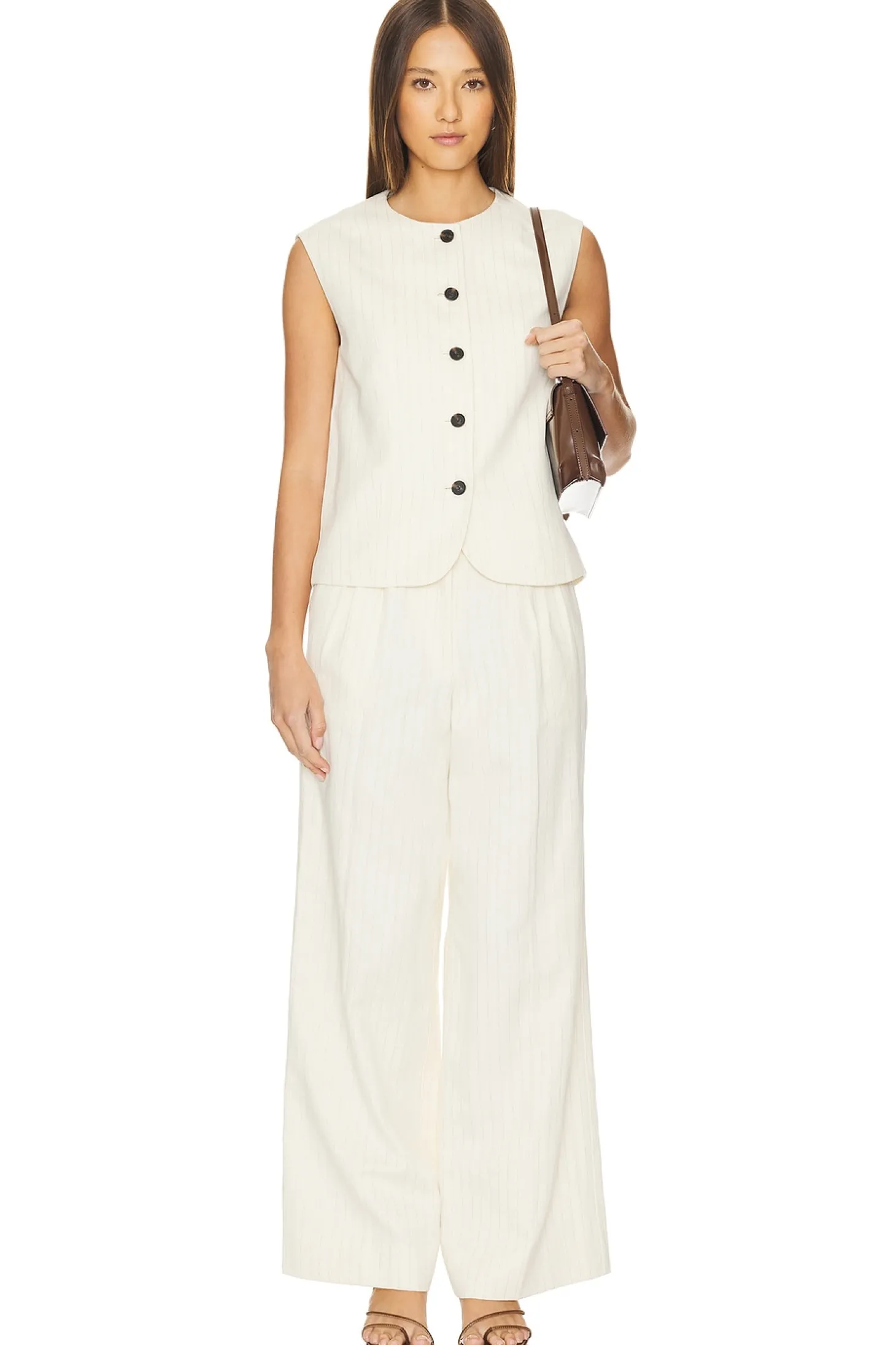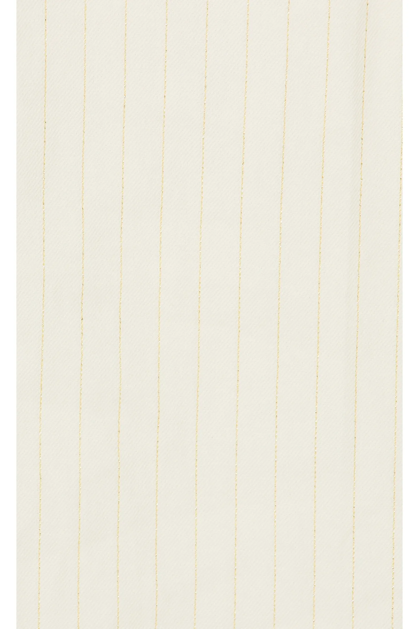 Self: 59% cotton 40% linen 1% polyester Pocket Lining: 100% polyester.Made in China.Dry clean only.Zip fly with button closure.4-pocket style.25" at the knee and 25" at the leg opening