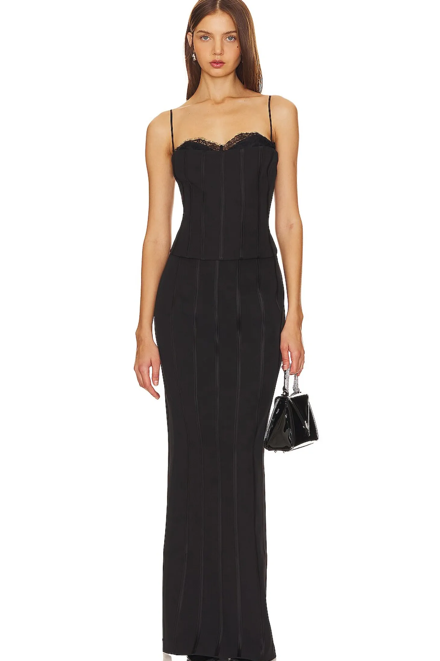 Self: 100% polyester Lining: 95% viscose 5% spandex.Made in China.Dry clean only.Hidden side zipper closure.Lace trim along neckline.Back lace-up tie detail.Item not sold as a set.Elevate your style with the Petra Top that combines chic design elements to accentuate and flatter your silhouette effortlessly.