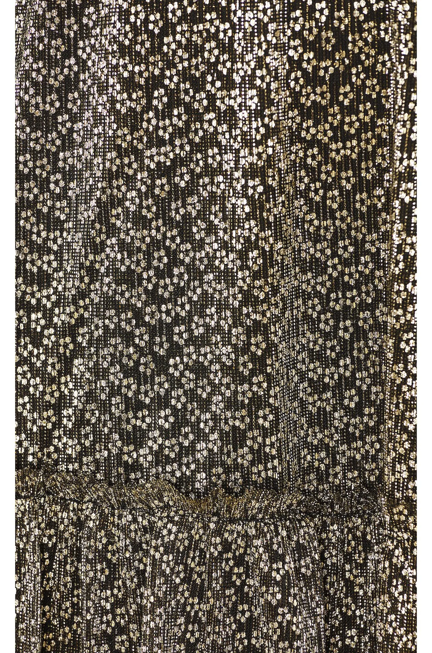Self: 60% polyester 40% metallic Lining: 100% polyester.Made in India.Hand wash.Fully lined.Pull-on styling.Lightweight flowy fabric with metallic threading throughout