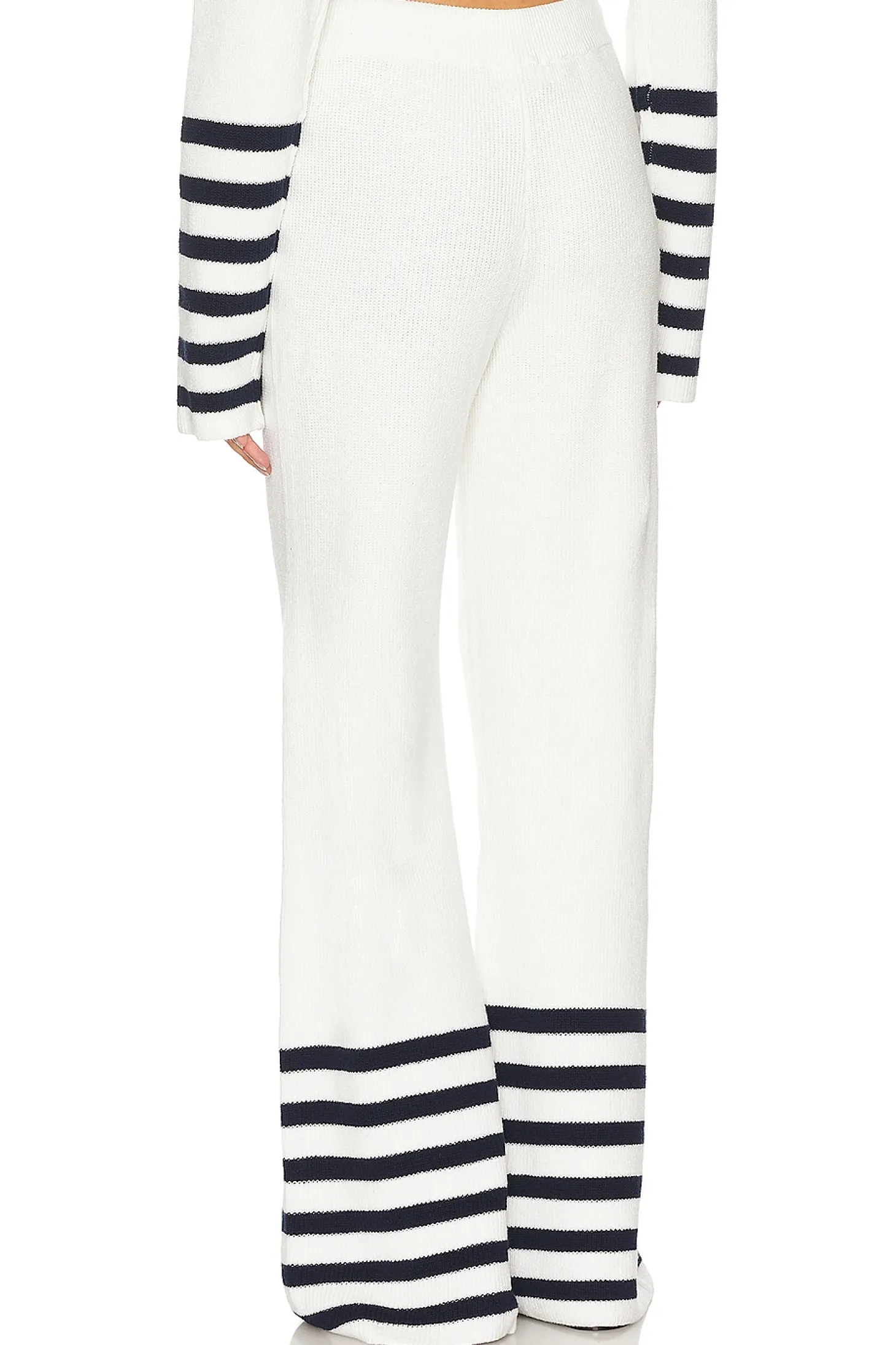 87% cotton 13% spandex.Made in China.Machine wash.Elastic drawstring waistband.Midweight knit fabric.Item not sold as a set.22" at the knee and 22" at the leg opening