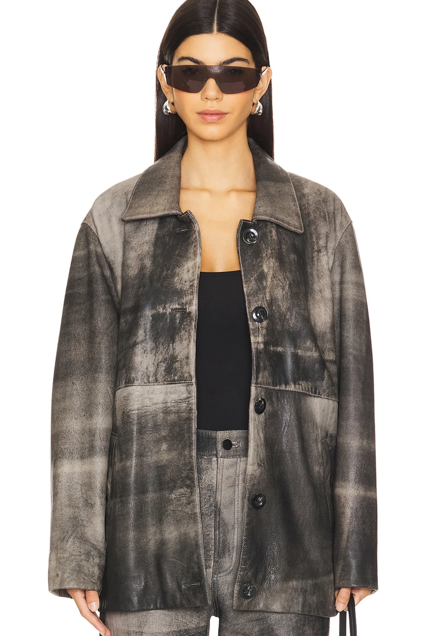 Outer shell: 100% lamb leather Lining: 97% polyeszter 3% spandex.Made in India.Leather care specialist.Front button closure.Side pockets.Leather.Item not sold as set