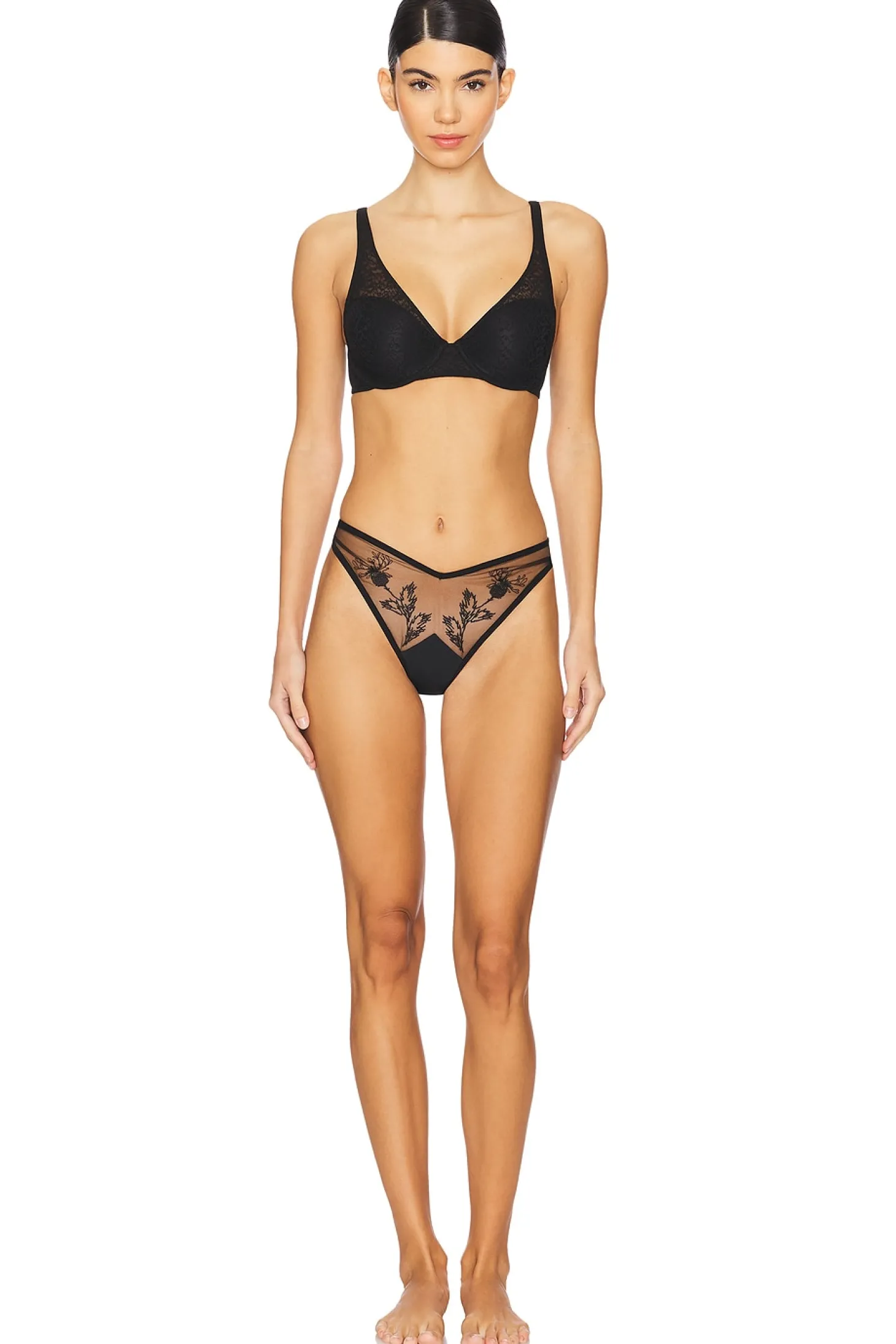77% nylon 23% elastane Lining 1: 80% nylon 20% elastane Lining 2: 100% polyester.Made in China.Hand wash.Underwire, lined and padded cups.Back hook and eye closure.Adjustable shoulder straps
