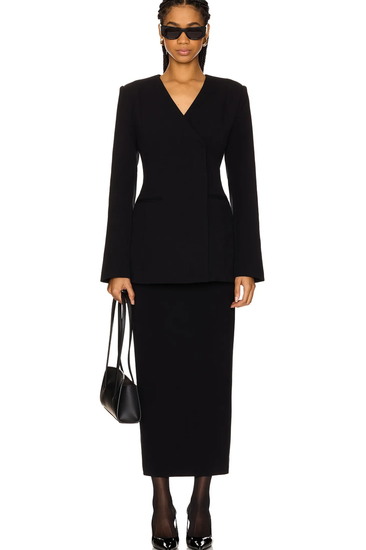 Self: 65% polyester 31% rayon 4% spandex Lining: 100% polyester.Made in China.Machine wash.Fully lined.Back adjustable double zip closure.Heavyweight ponte fabric.Item not sold as a set.Skirt measures approx 36" in length
