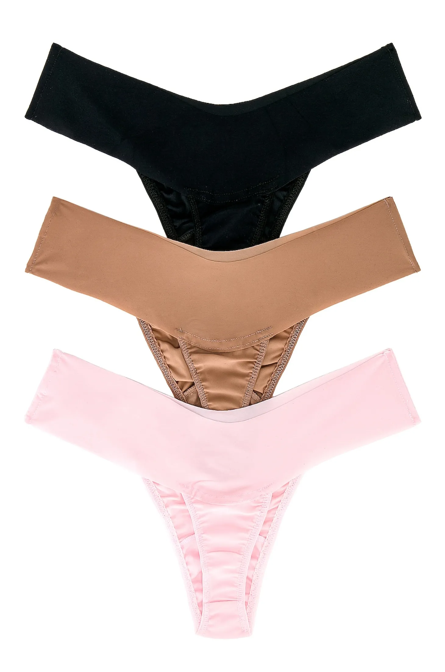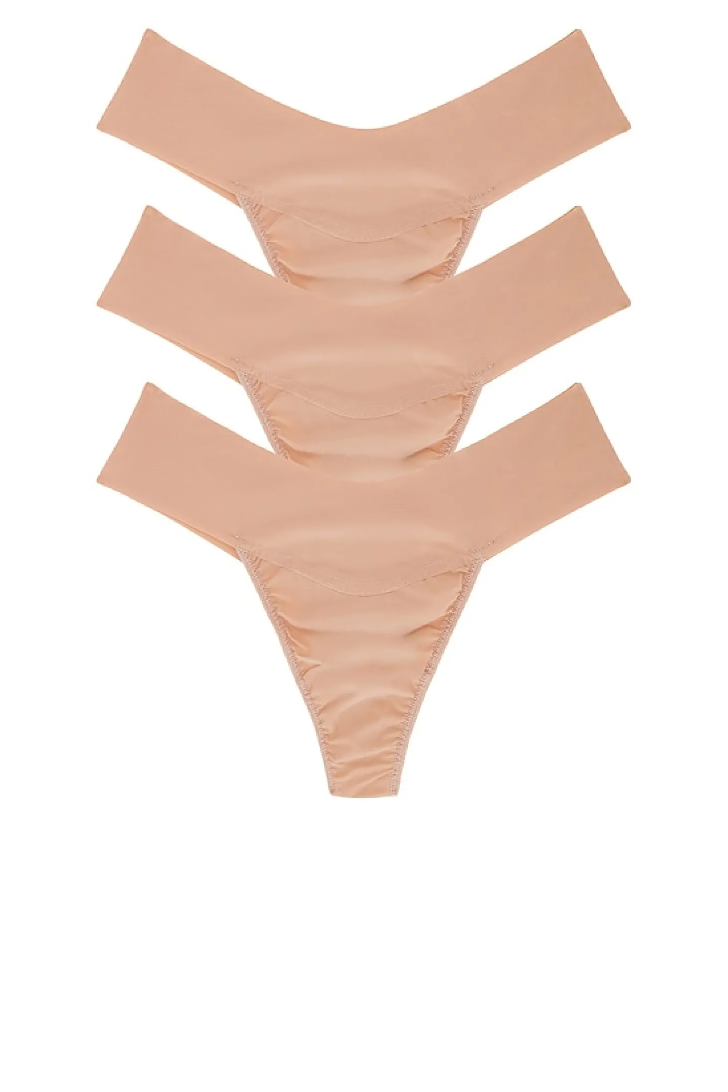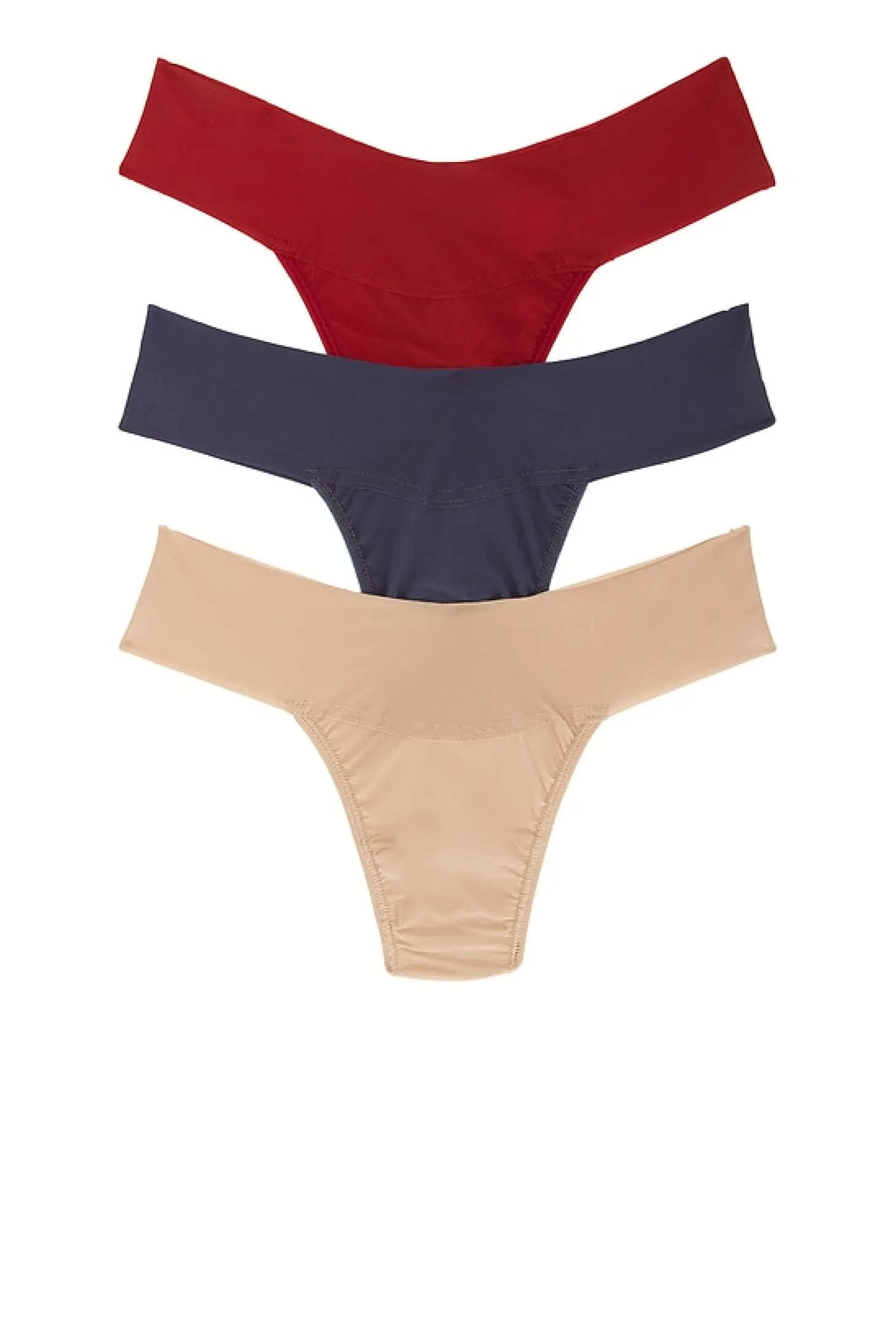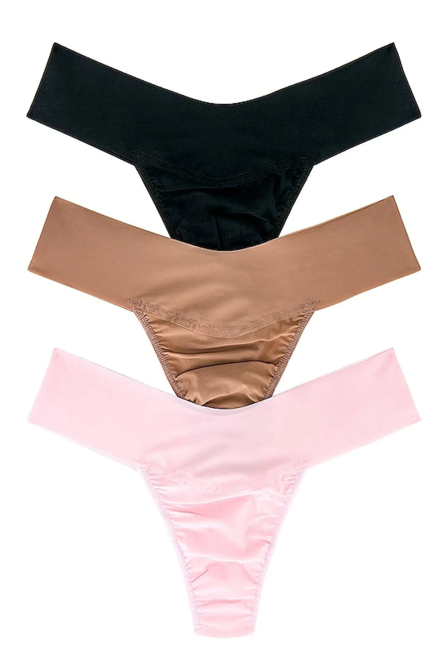 Self: 72% nylon 26% lycra spandex Lining: 100% supima cotton.Made in USA.Hand wash.Seamless design.Set of 3