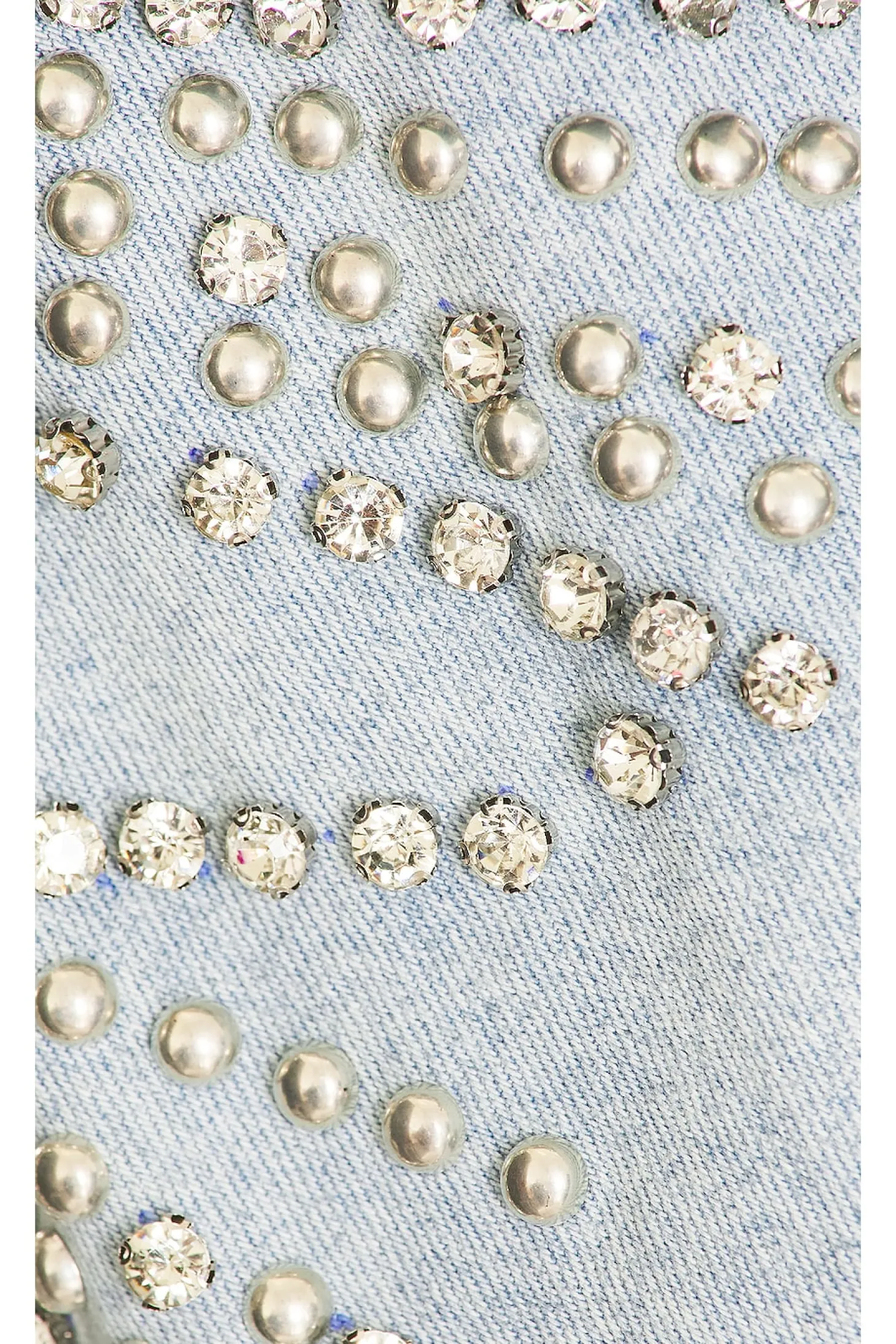 100% cotton.Made in China.Machine wash recommended.Front button closure.Breast flap pockets with button closure.Button cuffs.Silver-tone studs and crystal embellishments.Midweight denim fabric