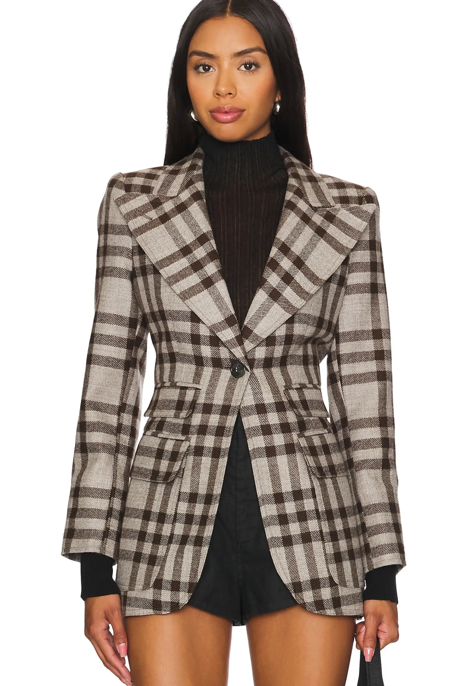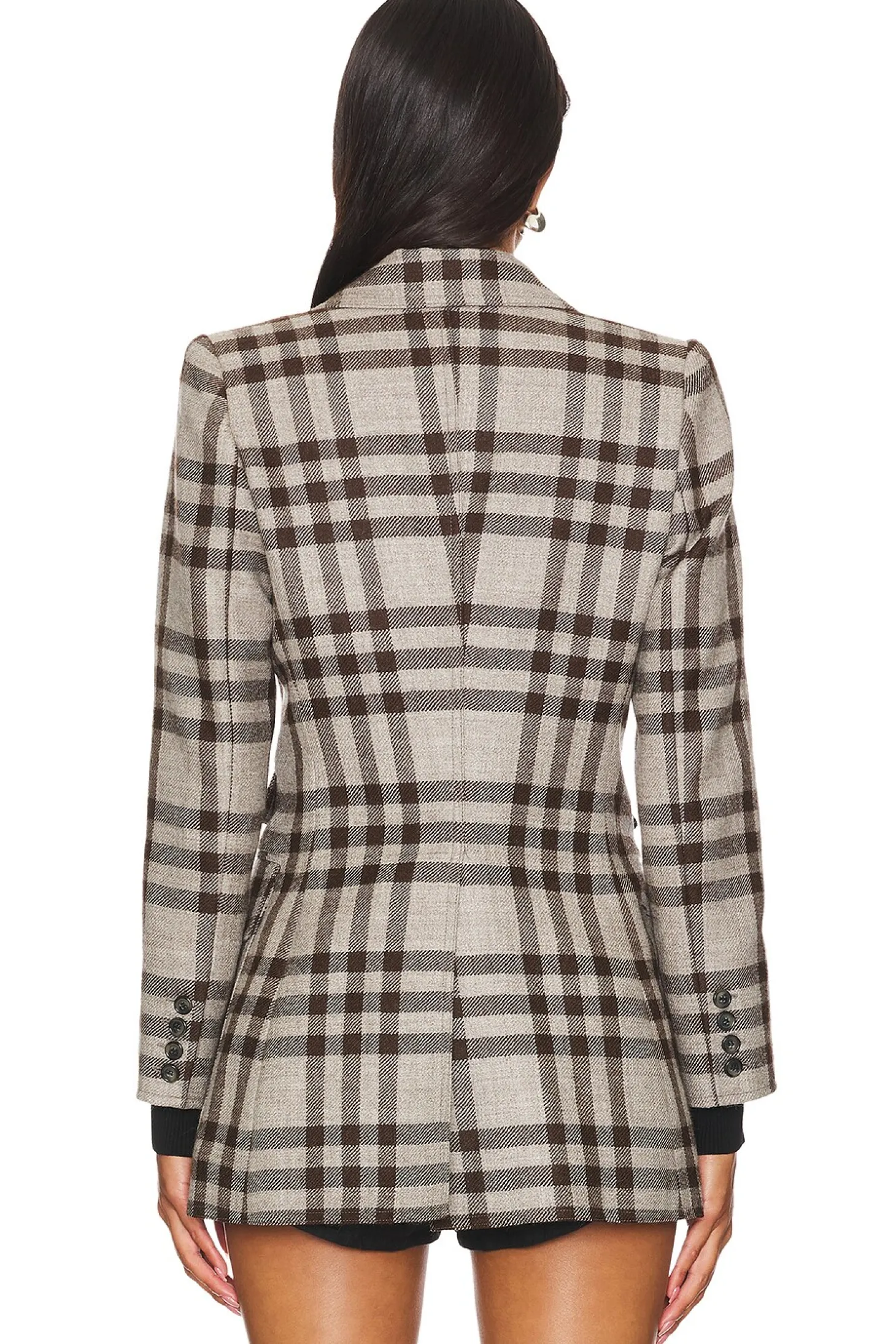 Self: 100% wool Contrast: 87% cotton 10% nylon 3% elastane Lining: 100% cupro rayon.Made in Canada.Dry clean recommended.Single breasted closure.Front pockets.Buttoned cuffs with ribbed jersey contrast Padded shoulders.Tweed fabric