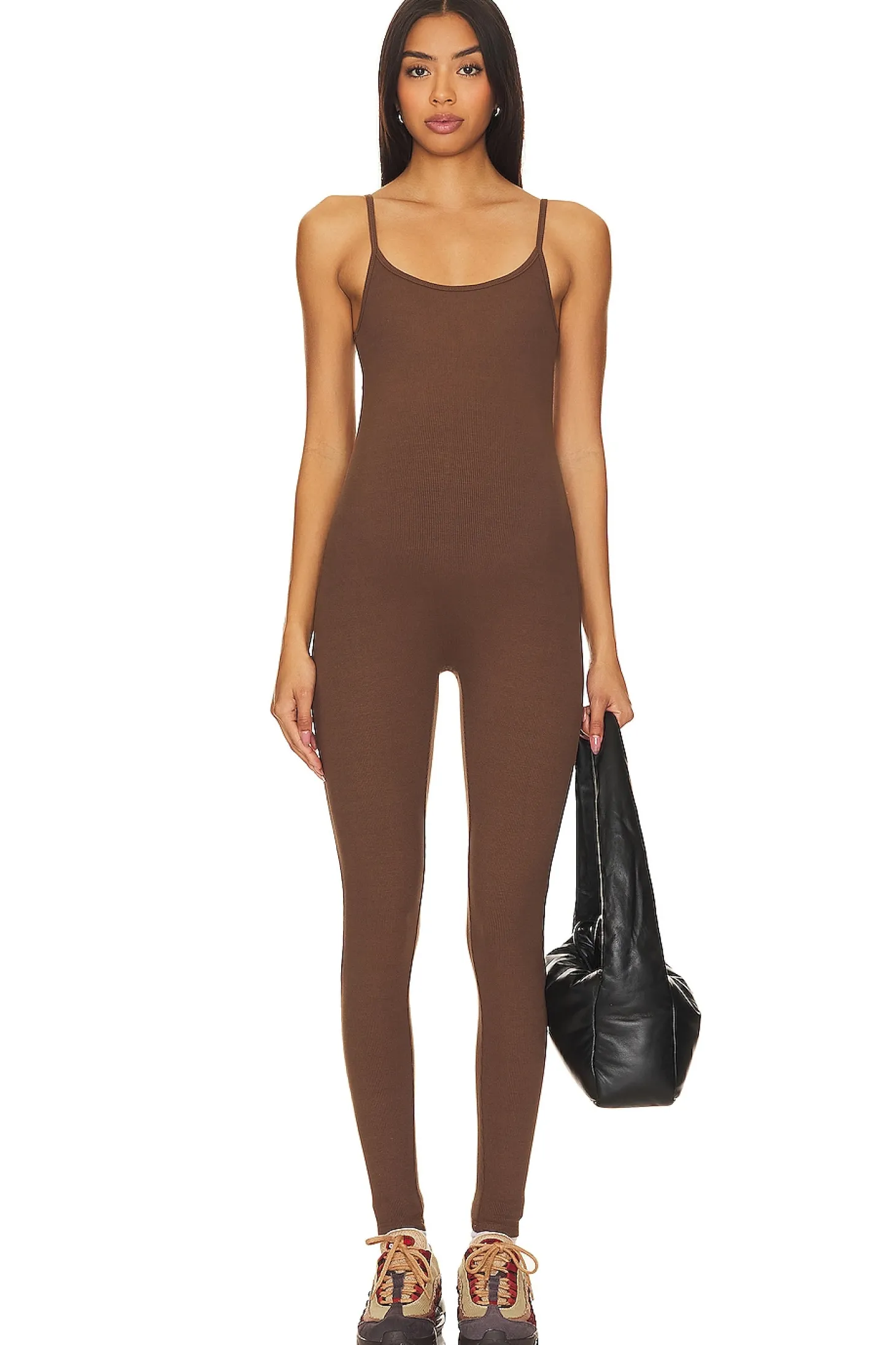 85% viscose 15% spandex.Made in China.Machine wash.Pull-on styling with elastic waistband.Stretch ribbed knit fabric.Bumpsuit material is made to gently stretch with the body through the stages of pregnancy. We recommend ordering Bumpsuit in your regular size.