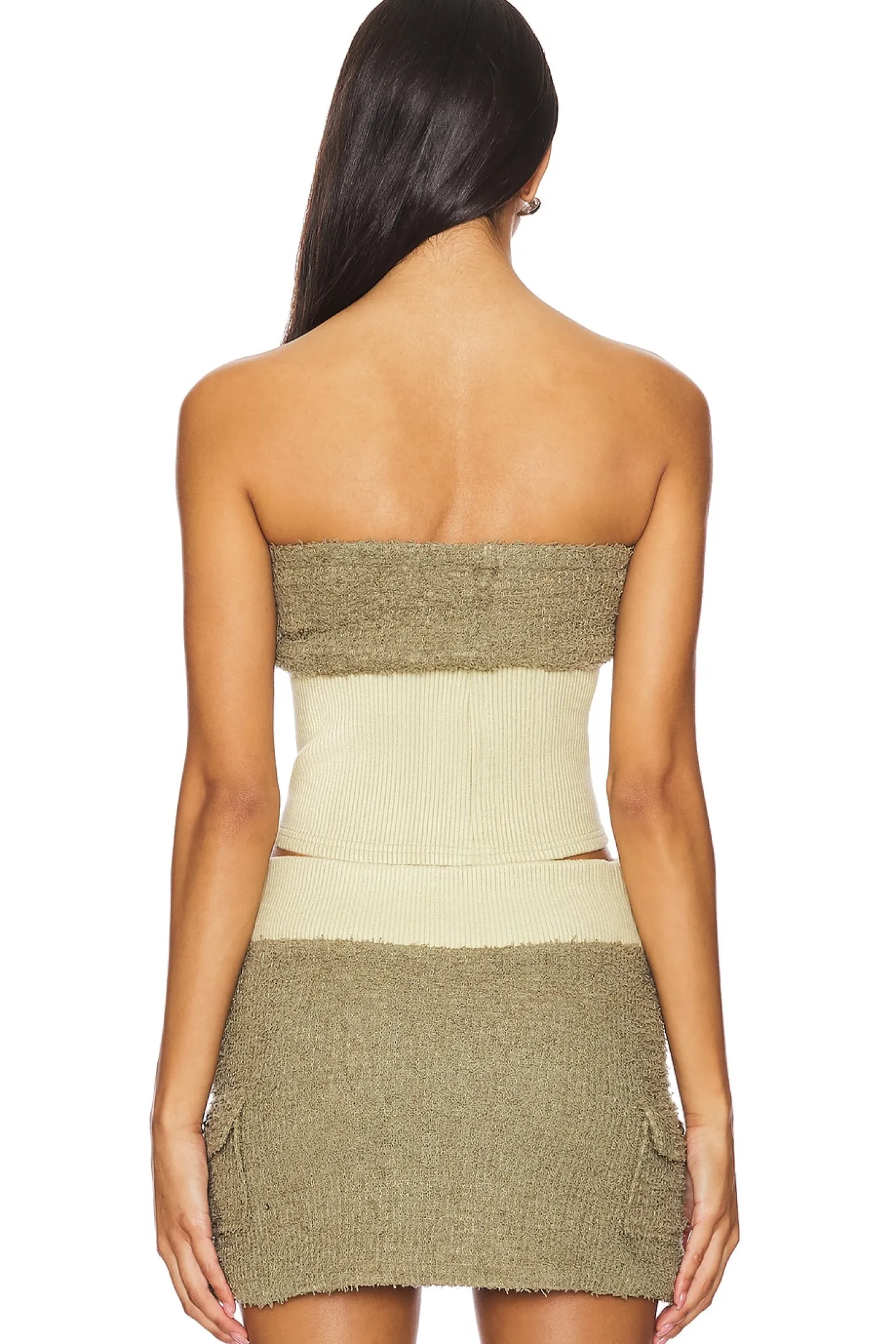 100% polyester.Made in China.Machine wash.Pull-on styling.Ribbed hem.Fuzzy knit neckline with stud embellishment.Item not sold as set