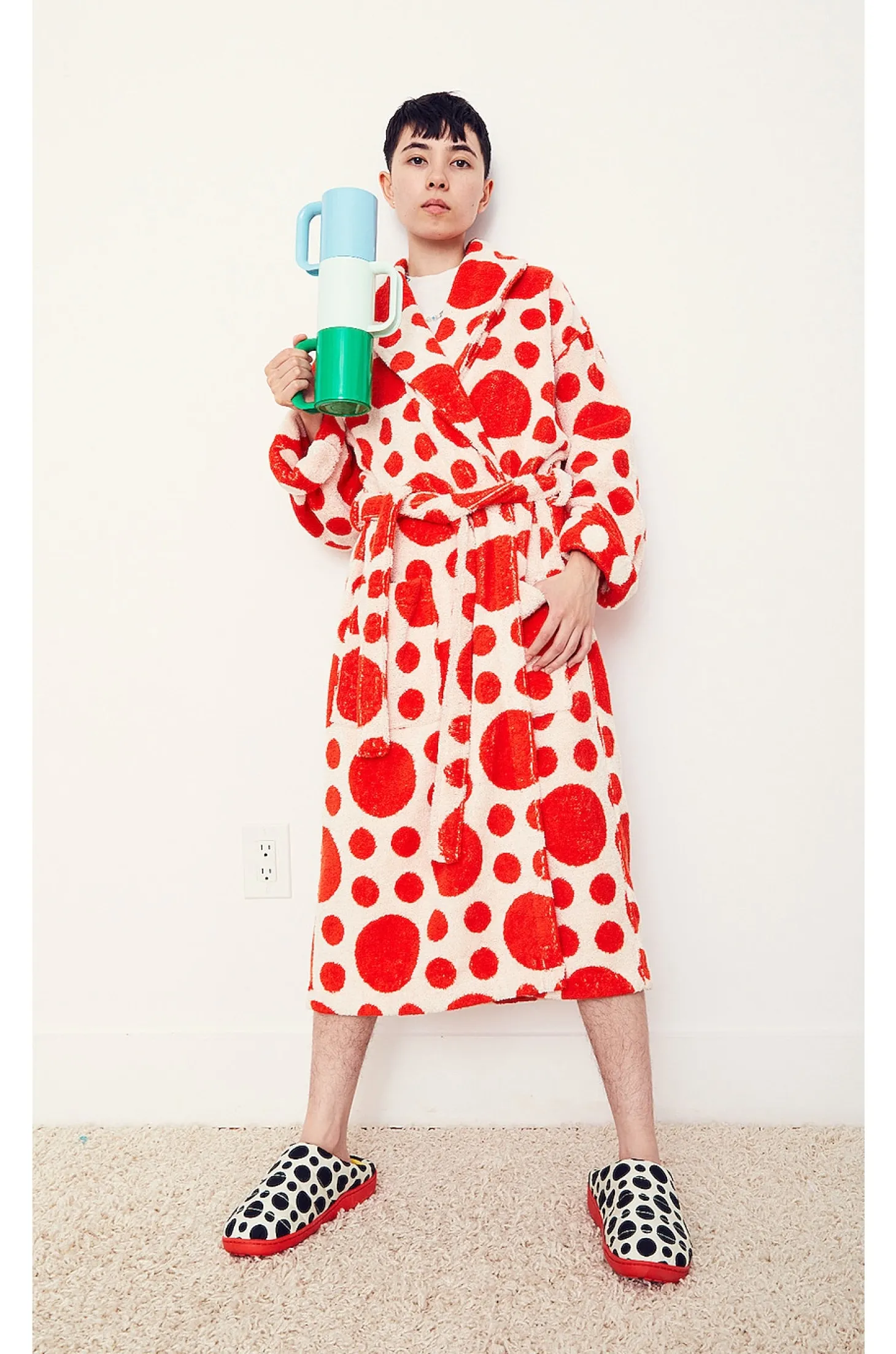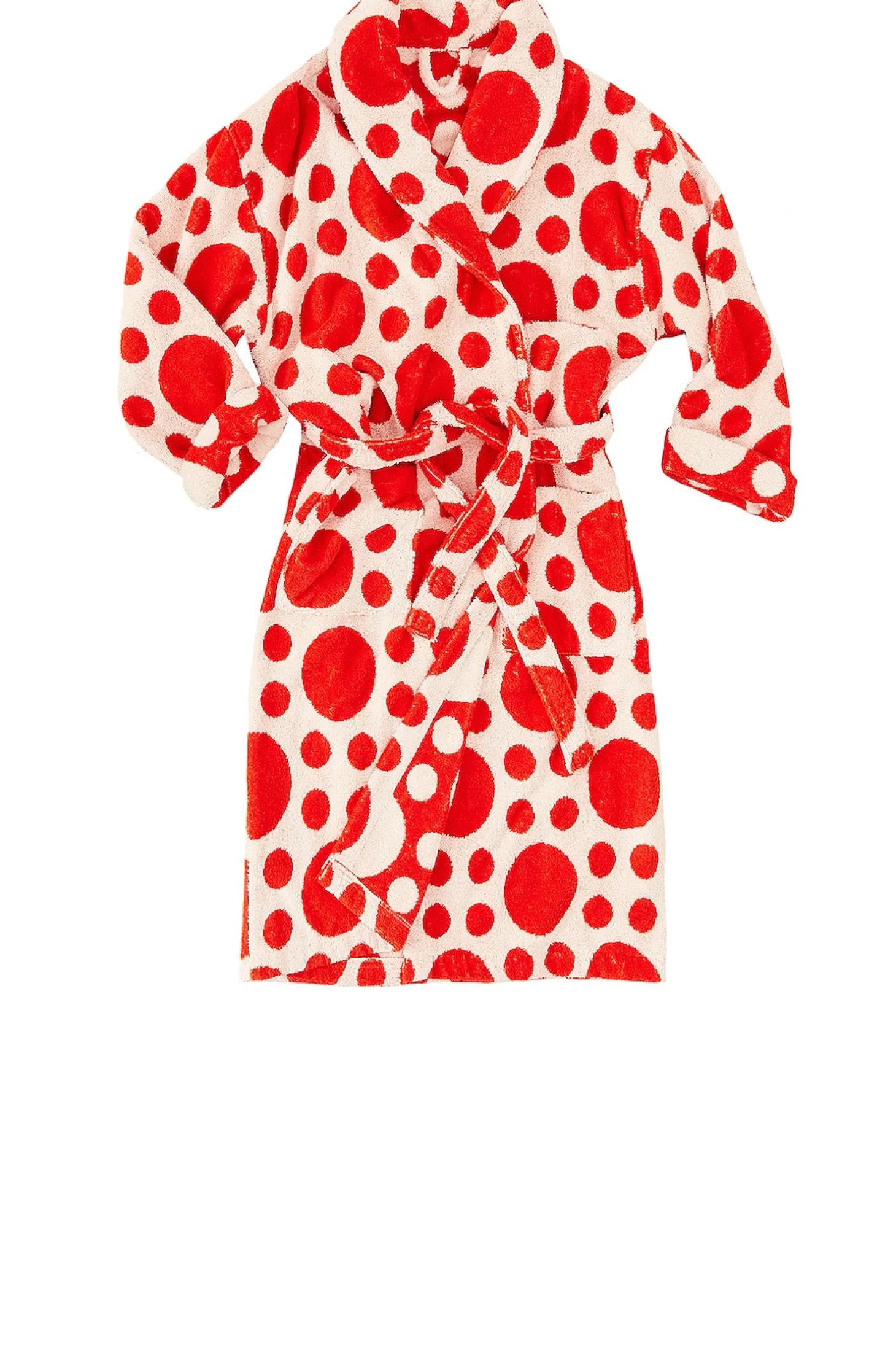 100% cotton.Made in Turkey.Gentle machine wash cold, tumble dry low. If a loop is loosened, cut instead of pulling..In Ring.Shawl collar, patch pockets, and tie in red and white ring pattern