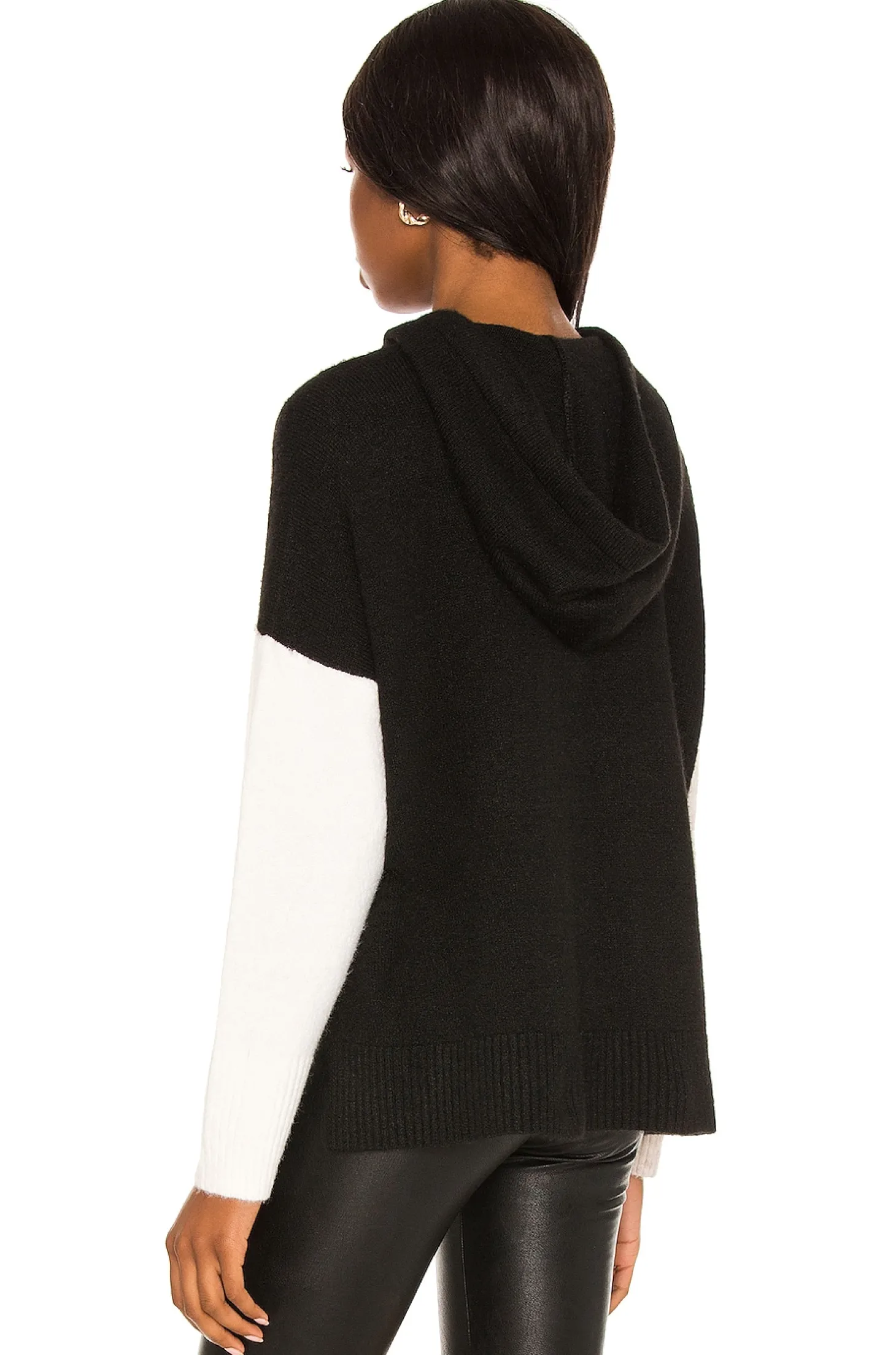 98% recycled polyester 2% spandex.Made in China.Machine wash cold.Side seam slits.Tri-color colorblock design.Drawstring hood.Ribbed hem and cuffs
