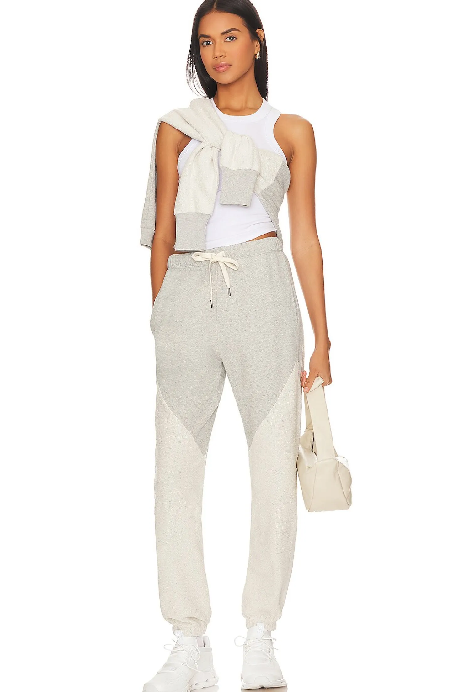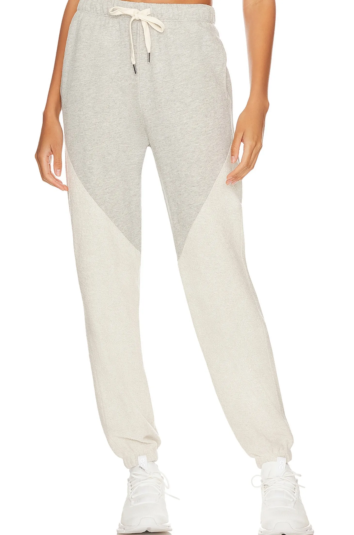 100% cotton.Made in USA.Machine wash.Elastic drawstring waistband.Side slant pockets.Elastic cuffs French terrycloth fabric.Item not sold as a set.14" at the knee narrows to 10" at the leg opening