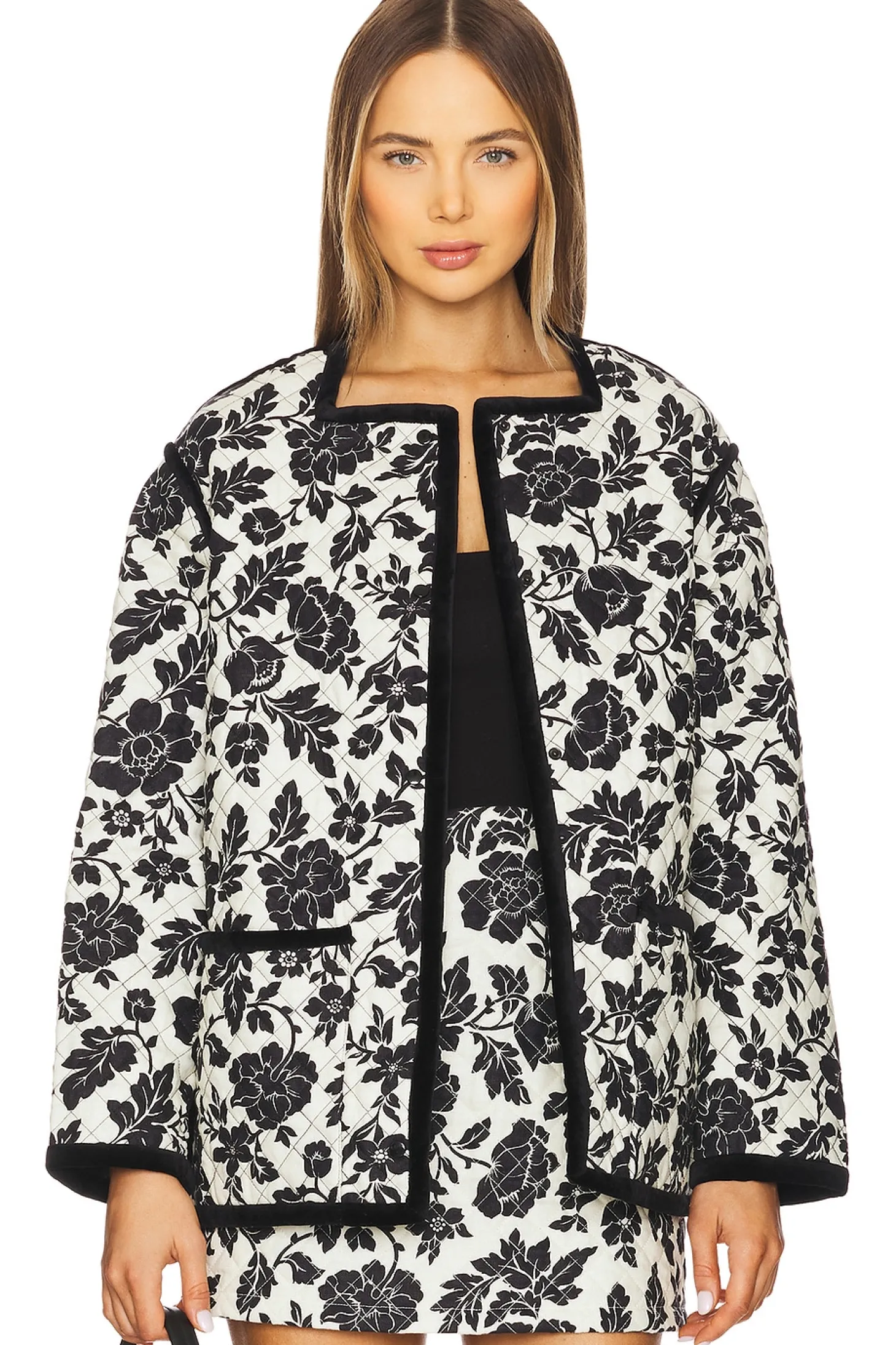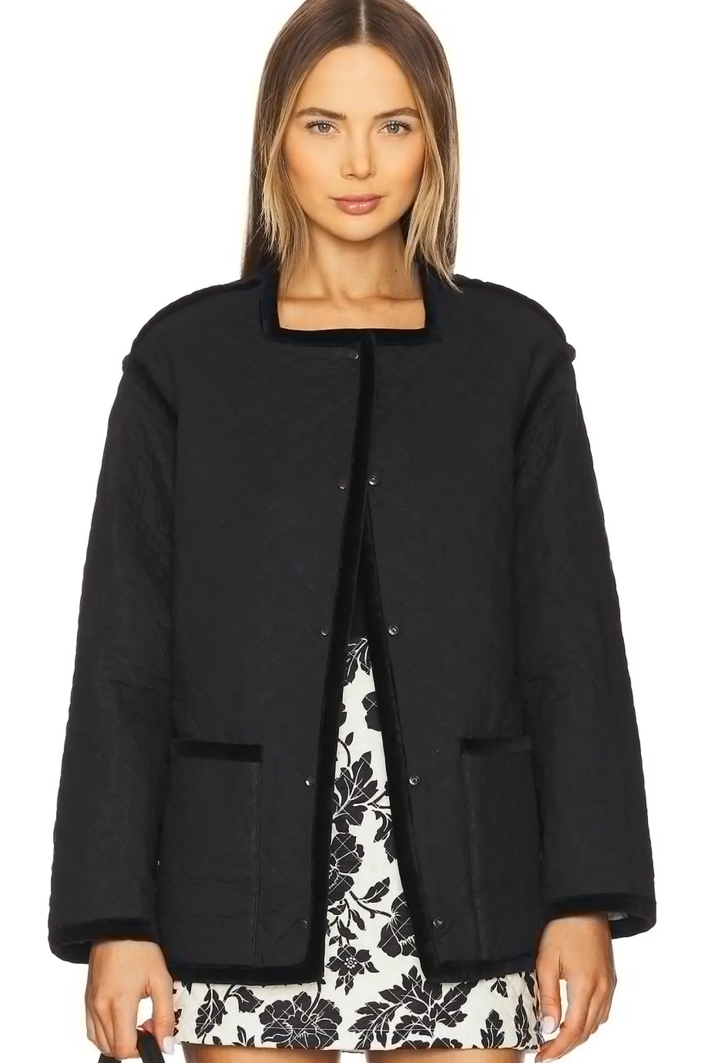 Linen textile.Imported.Hand wash recommended.Front button snap closure.Front pouch pockets.Linen fabric with velvet trim