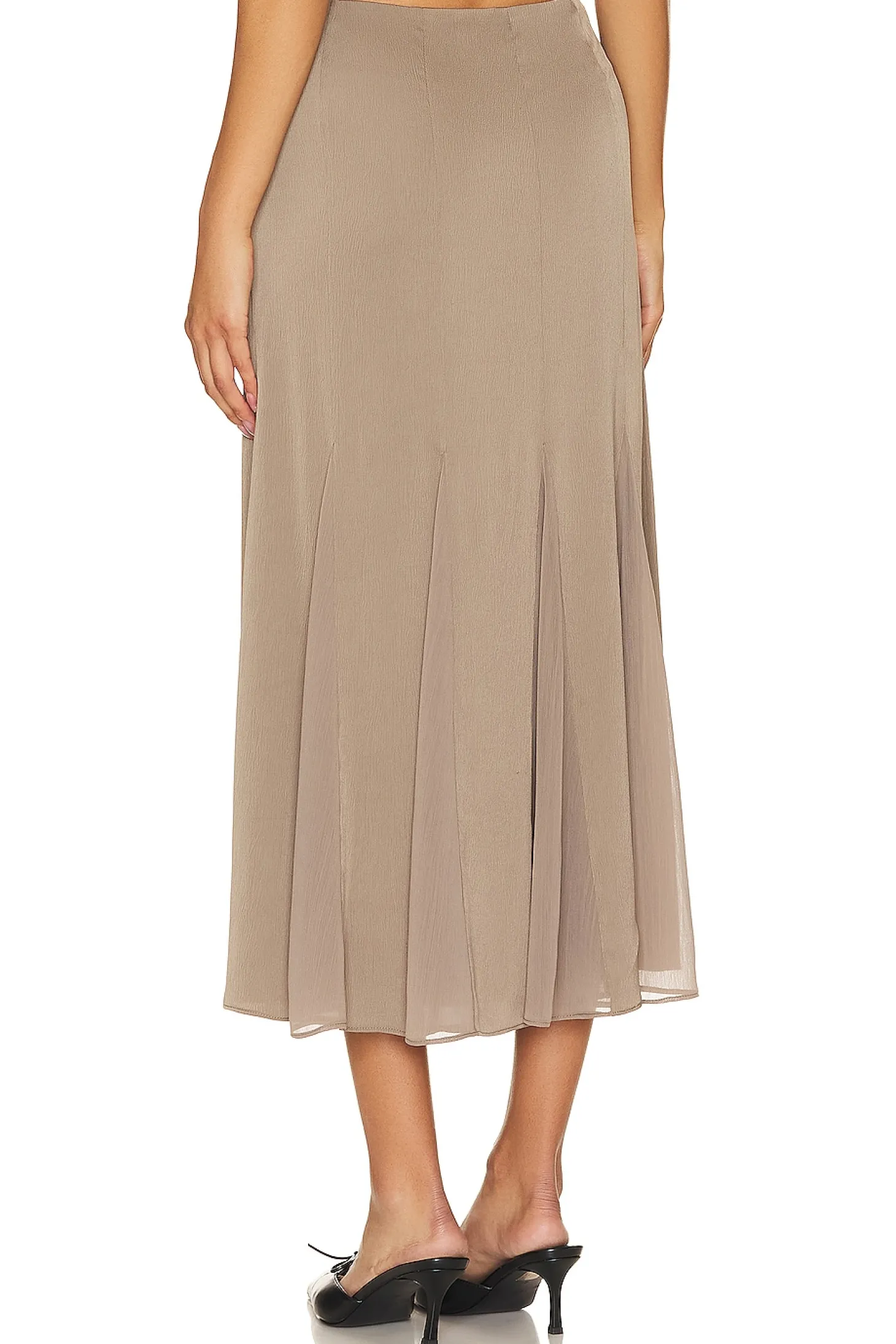 Polyester blend.Imported.Hand wash recommended.Unlined.Hidden side zipper closure.Lightweight crepe fabric with mesh panels.Item not sold as a set.Skirt measures approx 33" in length