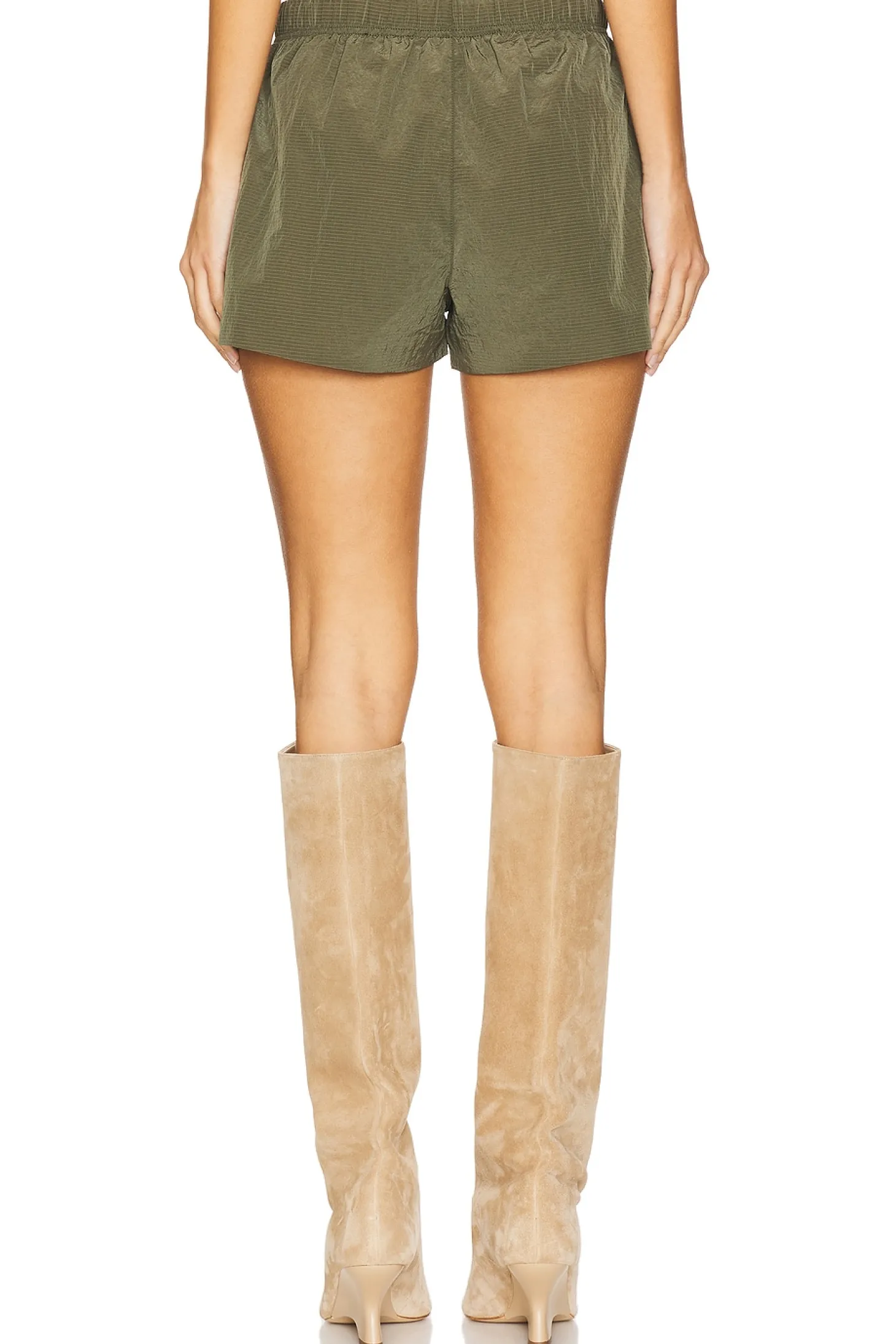 Self: 100% nylon Lining: 100% polyester.Made in China.Hand wash.Drawstring closure.Side slit pockets.Ripstop fabric.Shorts measure approx 11.5" in length