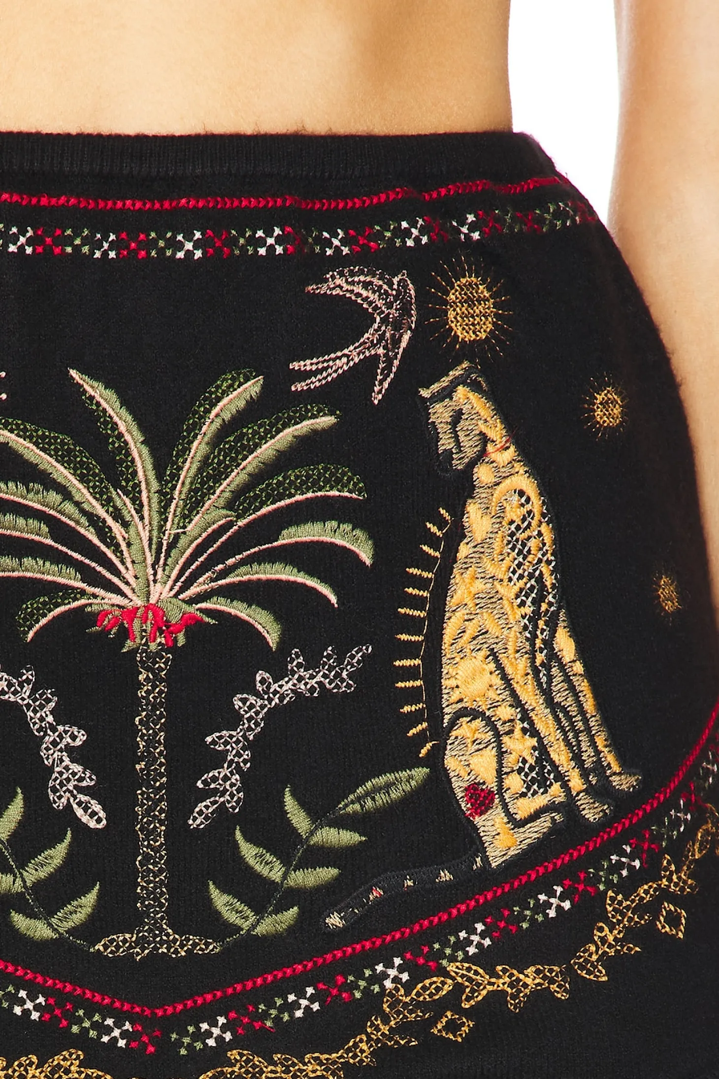 50% viscose 28% polyester 22% polyamide.Made in China.Machine wash.Pull-on styling.Embroidered graphic.Knit fabric.Item not sold as set.Shorts measure approx 10" in length