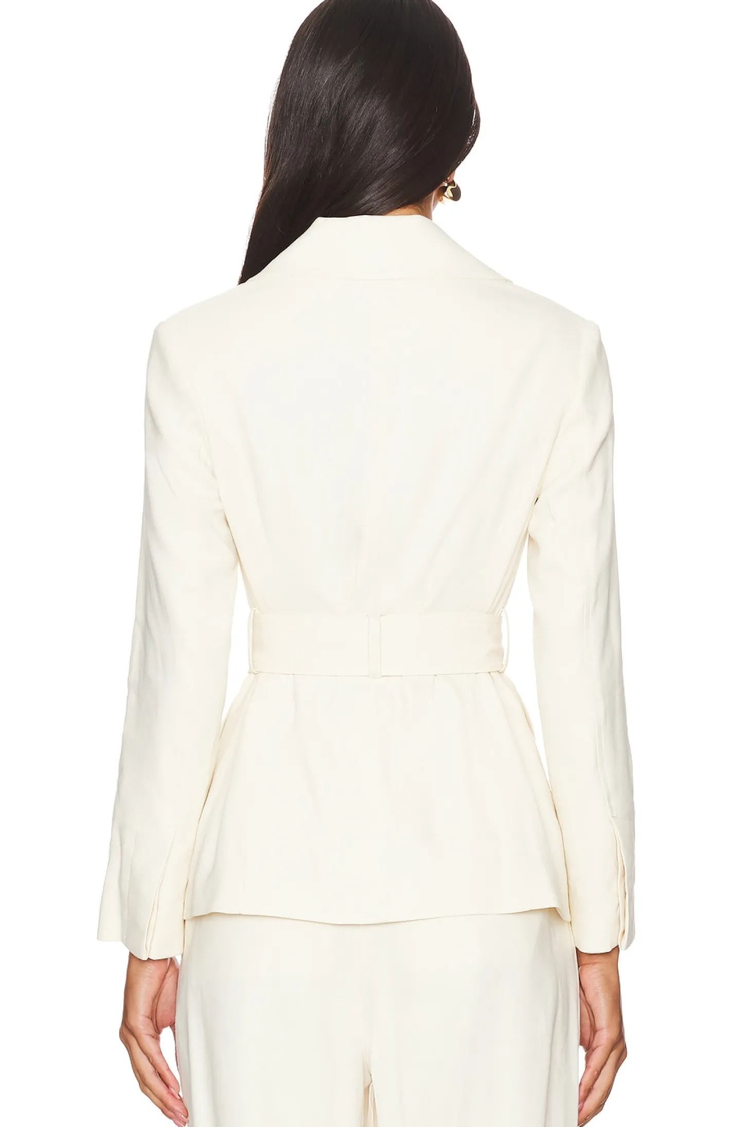 Self: 52% Linen 45% viscose 3% elastane Lining: 51% polyester 49% cotton Sleeve Lining: 100% polyester.Made in Vietnam.Dry clean.Front snap button closure.Button cuffs.4-pocket design.Attached waist belt.Midweight twill fabric Item not sold as a set