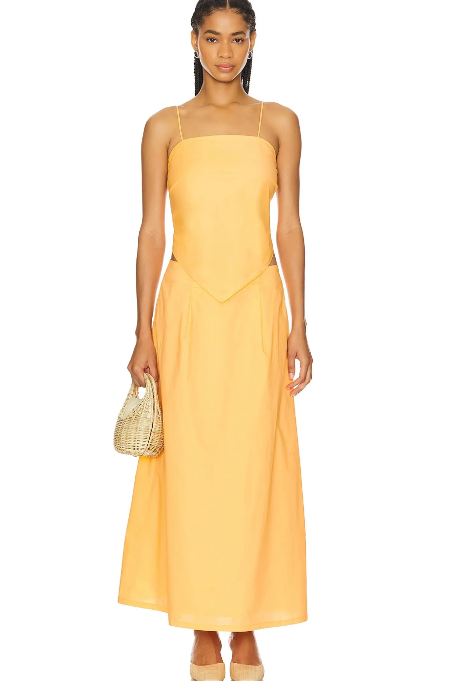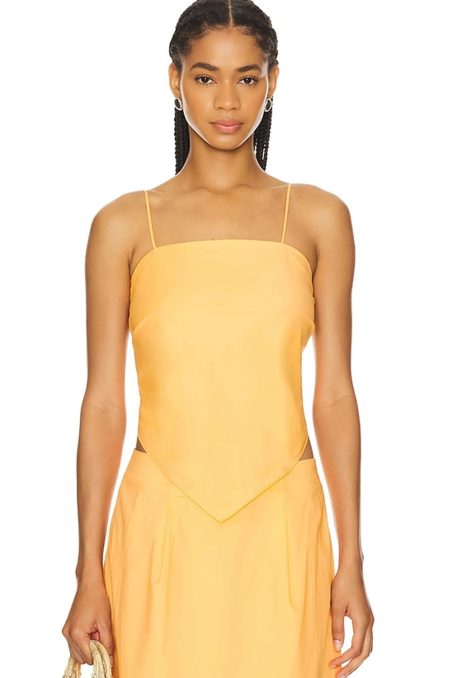 100% cotton.Made in China.Machine wash cold.Back tie closure.Adjustable shoulder straps.Kerchief hem.Lightweight poplin fabric