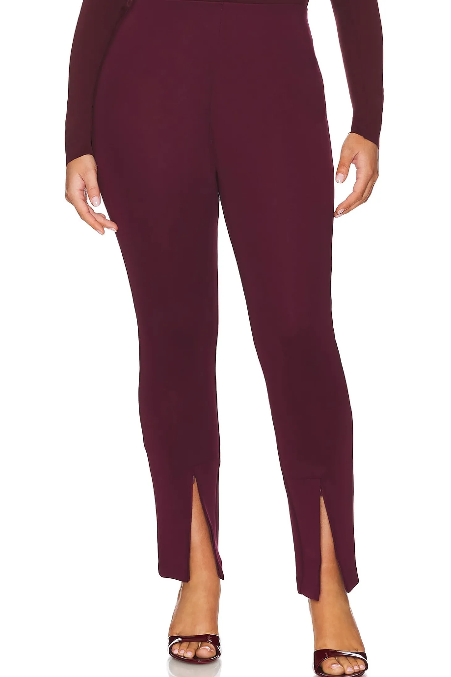 92% polyester 8% elastane.Made in China.Hand wash.Split hem