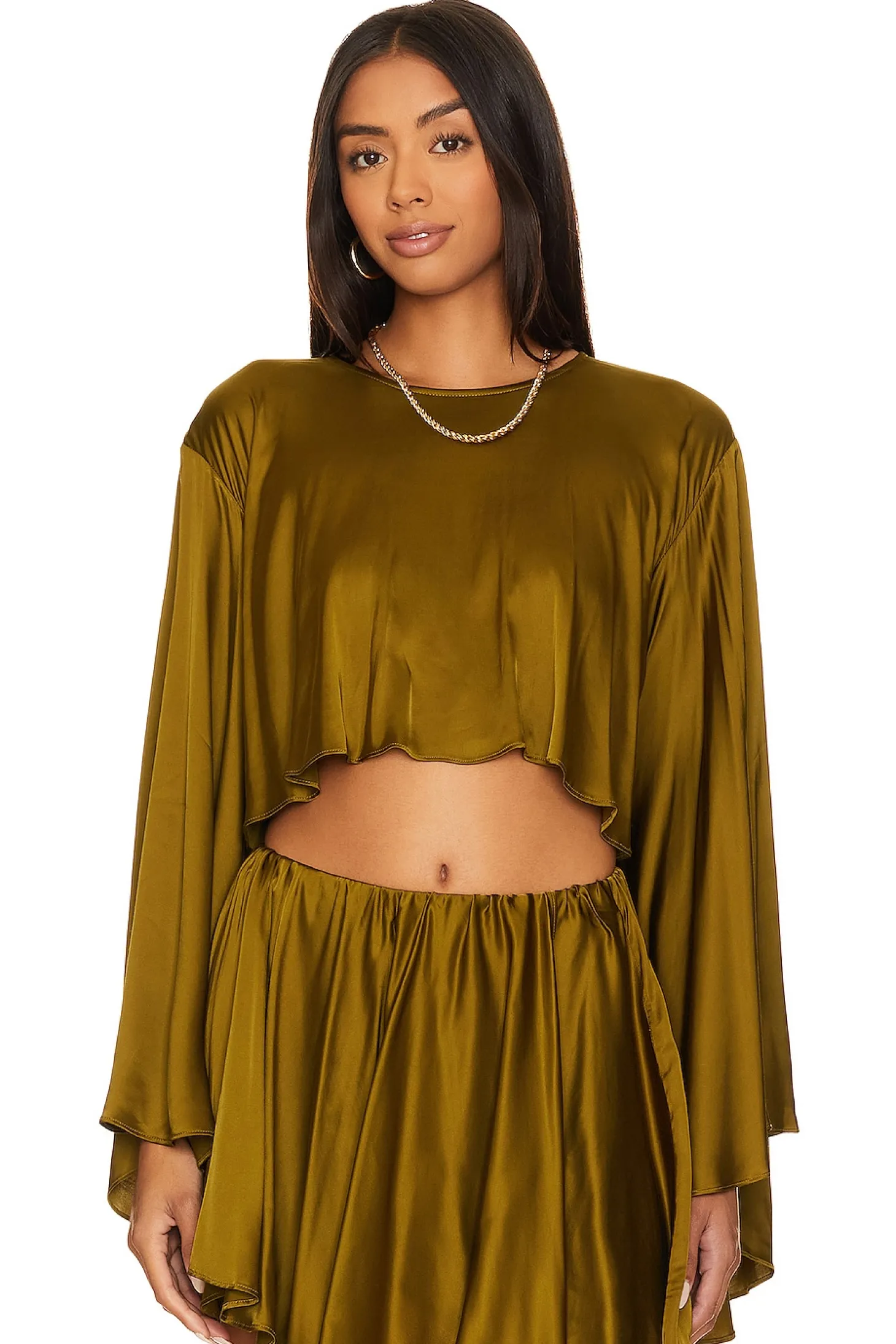 53% viscose 44% rayon 3% spandex.Made in China.Dry clean only.Back tie closures.Draped satin fabric.Item not sold a as set
